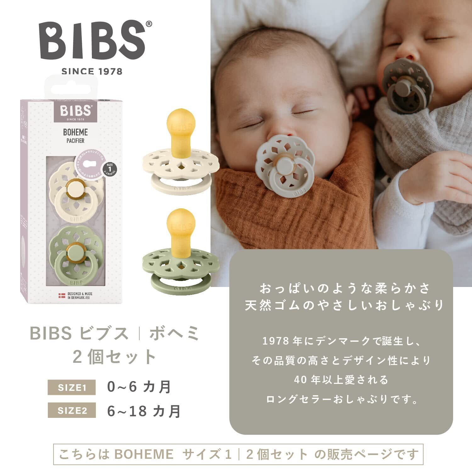 BIBS(ビブス) 天然ゴムおしゃぶり 2個セット BOHEME ボヘミ サイズ1(0~6カ月)【日本正規品】BPAフリー アーチ形状で摩擦を軽減 胸に似た丸型ニップル 230101 Ivory/Sage