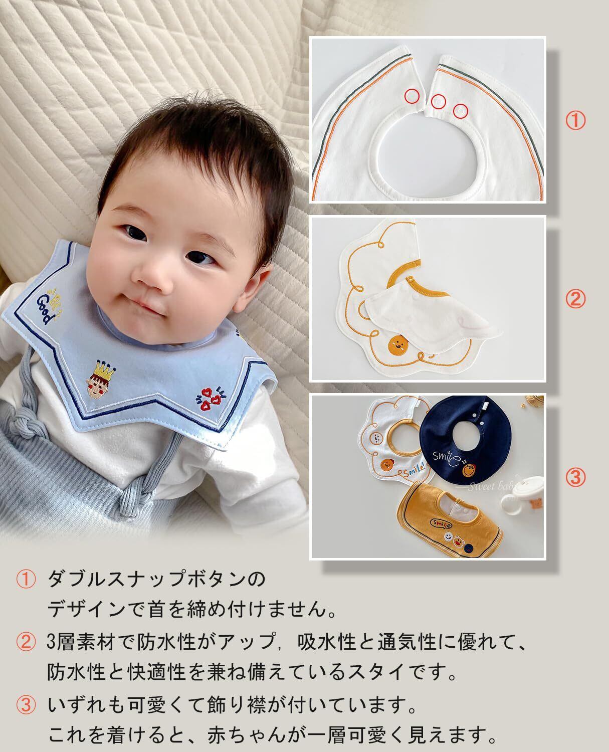 Hapipana 防水スタイ よだれかけ 刺繍柄付き ベビー ビブ 赤ちゃん 綿100% 360度回転 柔らかい 保育園用 出産のお祝いギフト