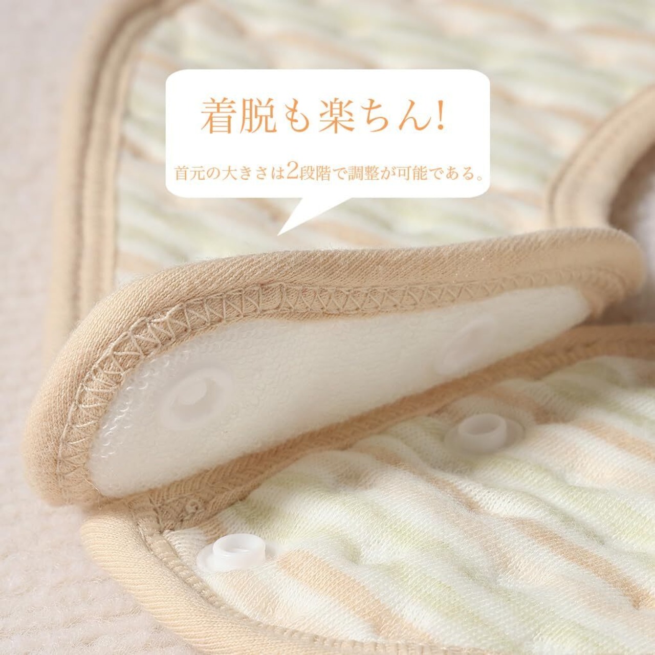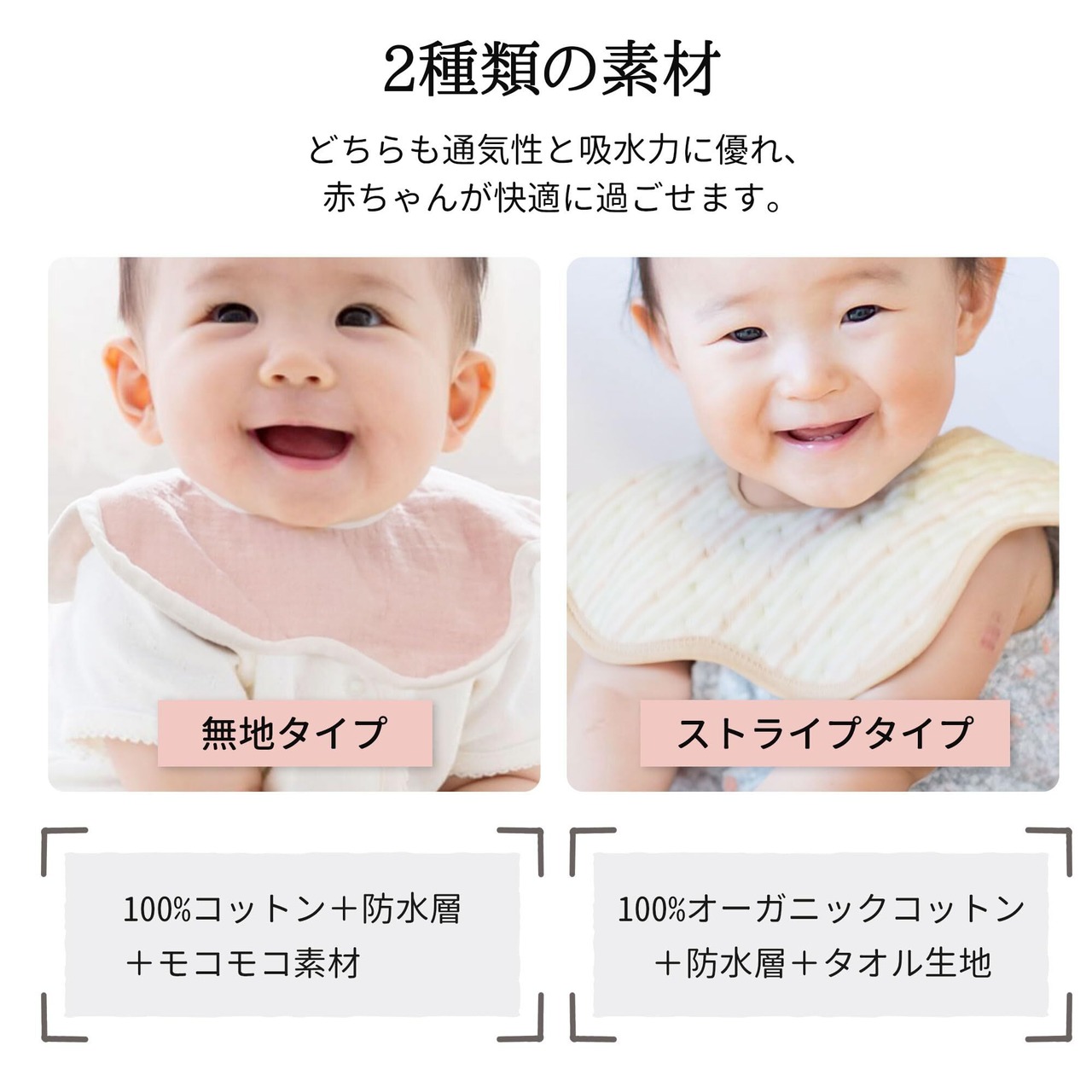 オーガニックコットン柔らかく通気性も抜群!赤ちゃんのお口周りにも安 心してお使いいただけます。