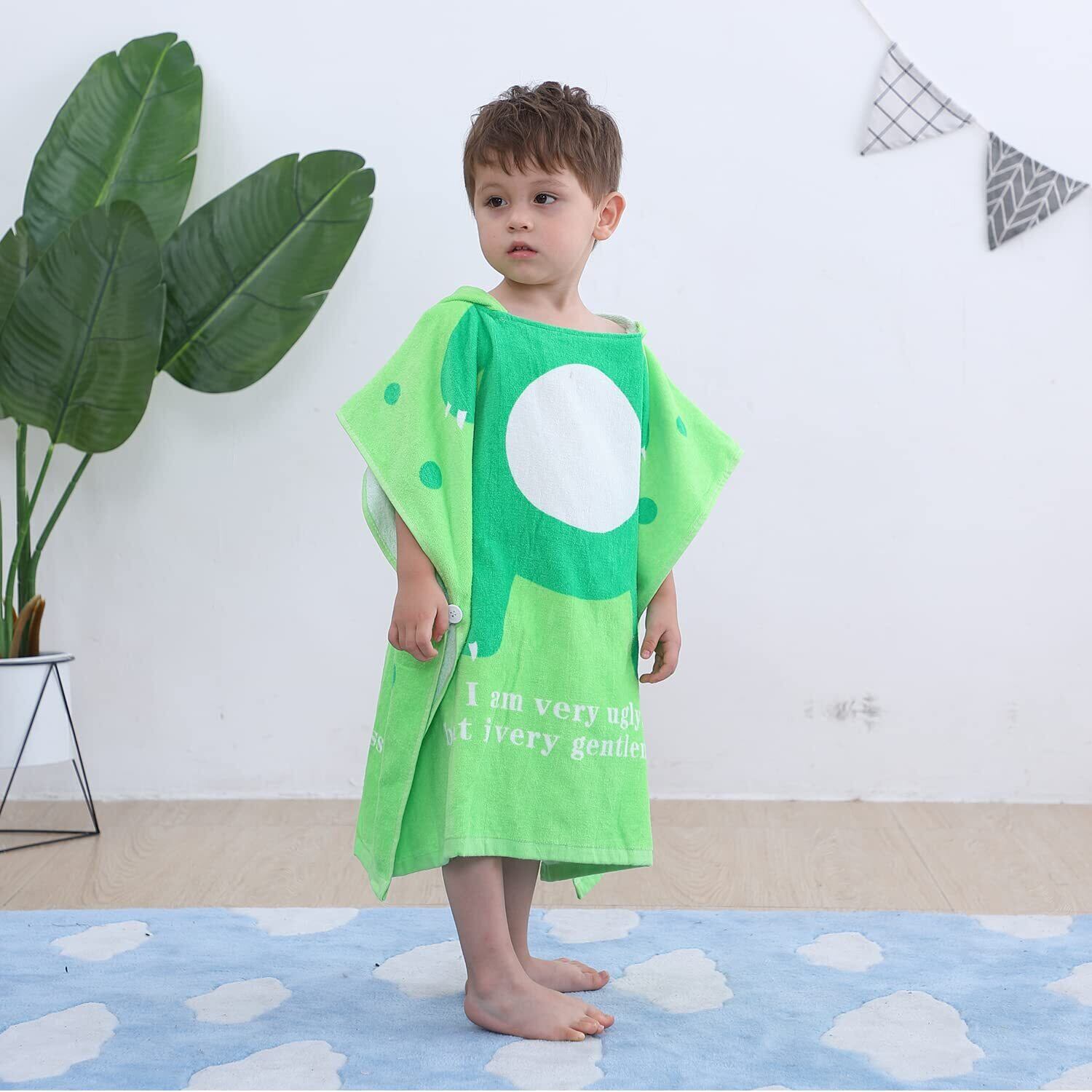 LOLANTA バスローブ キッズ フード付き ベビー バスタオル 100%綿 子供 タオル 水遊び プール お風呂 出産お祝い ダークグリーン 1-6歳