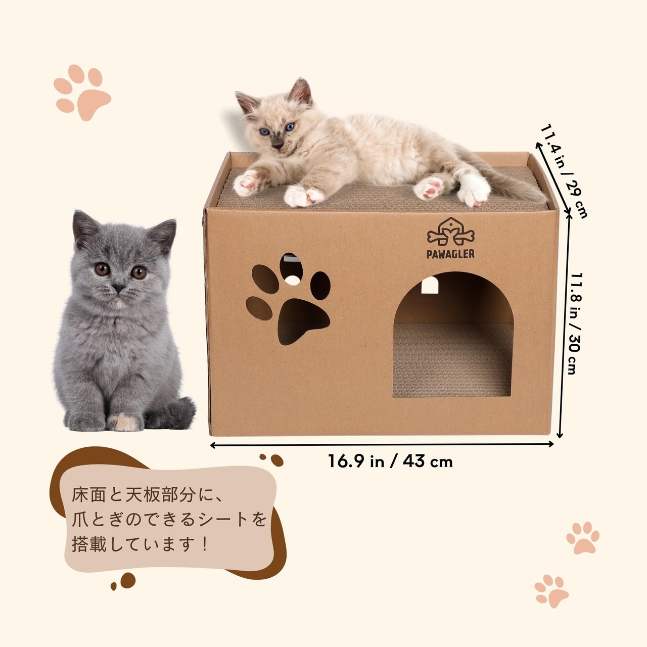 PAWAGLER 猫ダンボールハウス爪とぎ 爪みがき段ボール キャットハウス 猫用ダンボールハウス つめとぎ猫(爪とぎ交換便利) 猫爪磨きハウス猫部屋ベッド 通気 丈夫 ストレス解消 組立簡単強度の高い素材(43 x 29 x 30cm)