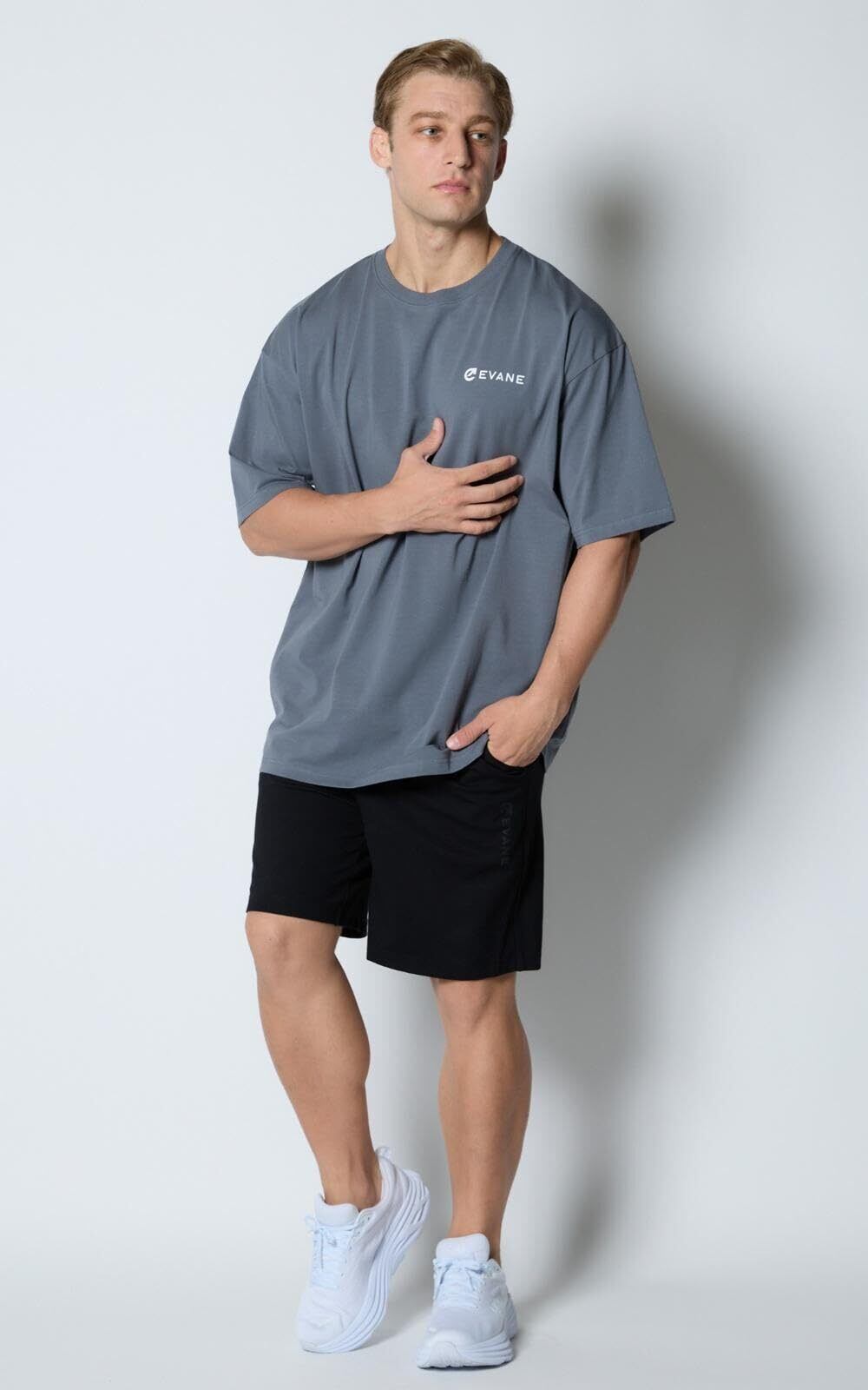 EVANE エバン オーバーサイズ コットン ストレッチ バッグプリント Tシャツ メンズ 半袖 ランニング ジム トレーニング ワークアウト フィットネス 筋トレ スポーツ ウェア 大きめ ゆったり 人気 快適 S~XLサイズ
