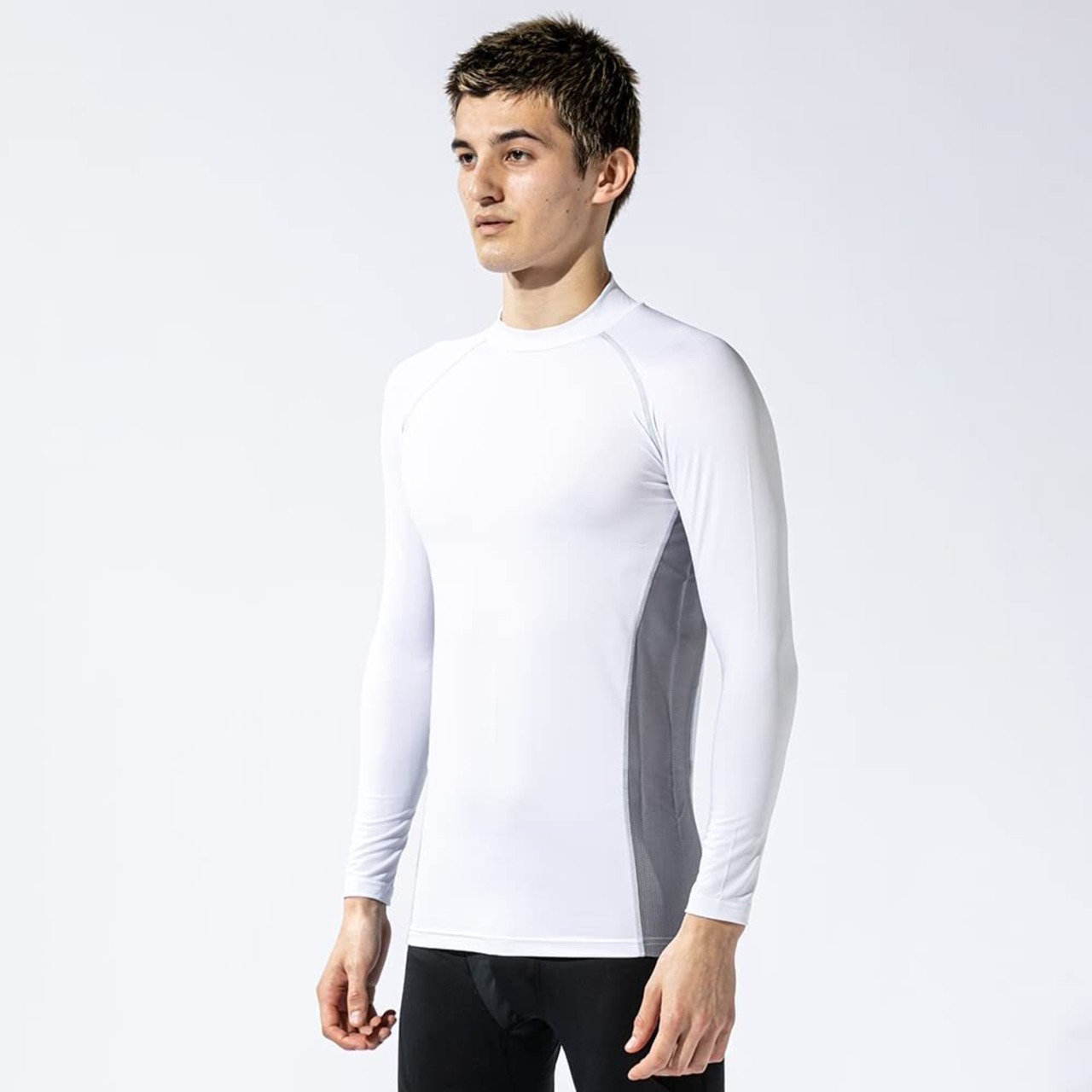 おたふく手袋 夏用インナー 長袖 ハイネック 接触冷感 吸汗速乾 消臭 コンプレッション UVカット メンズ JW-625 ホワイト 3L 【3枚セット】