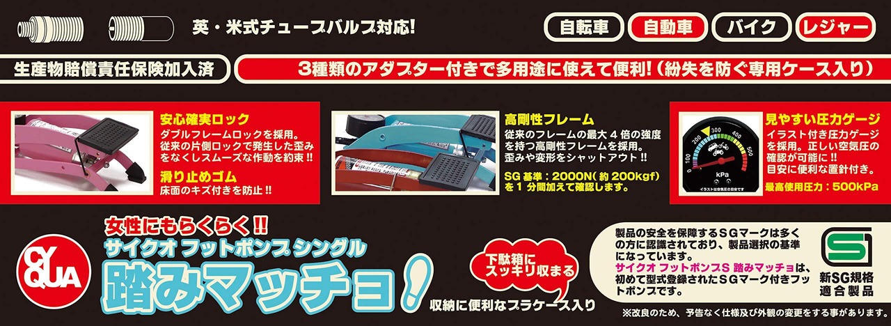 エマーソン(Emerson) NEWRAYTON(ニューレイトン) 空気入れ フットポンプ 踏みマッチョ ブラック シングルポンプ 最高圧力500kPa 新SG規格適合品 CY-001BK