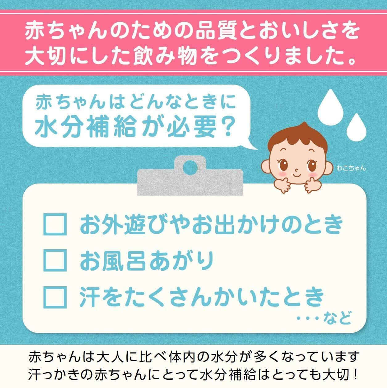 水分及び電解質がすばやく体内に吸収されるように設計されています。乳幼児に飲みやすい甘さとりんごの風味に調整しています。