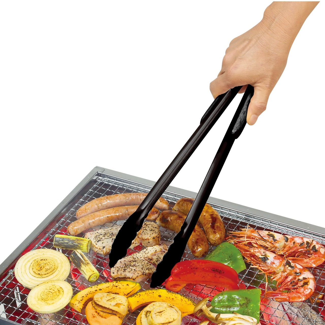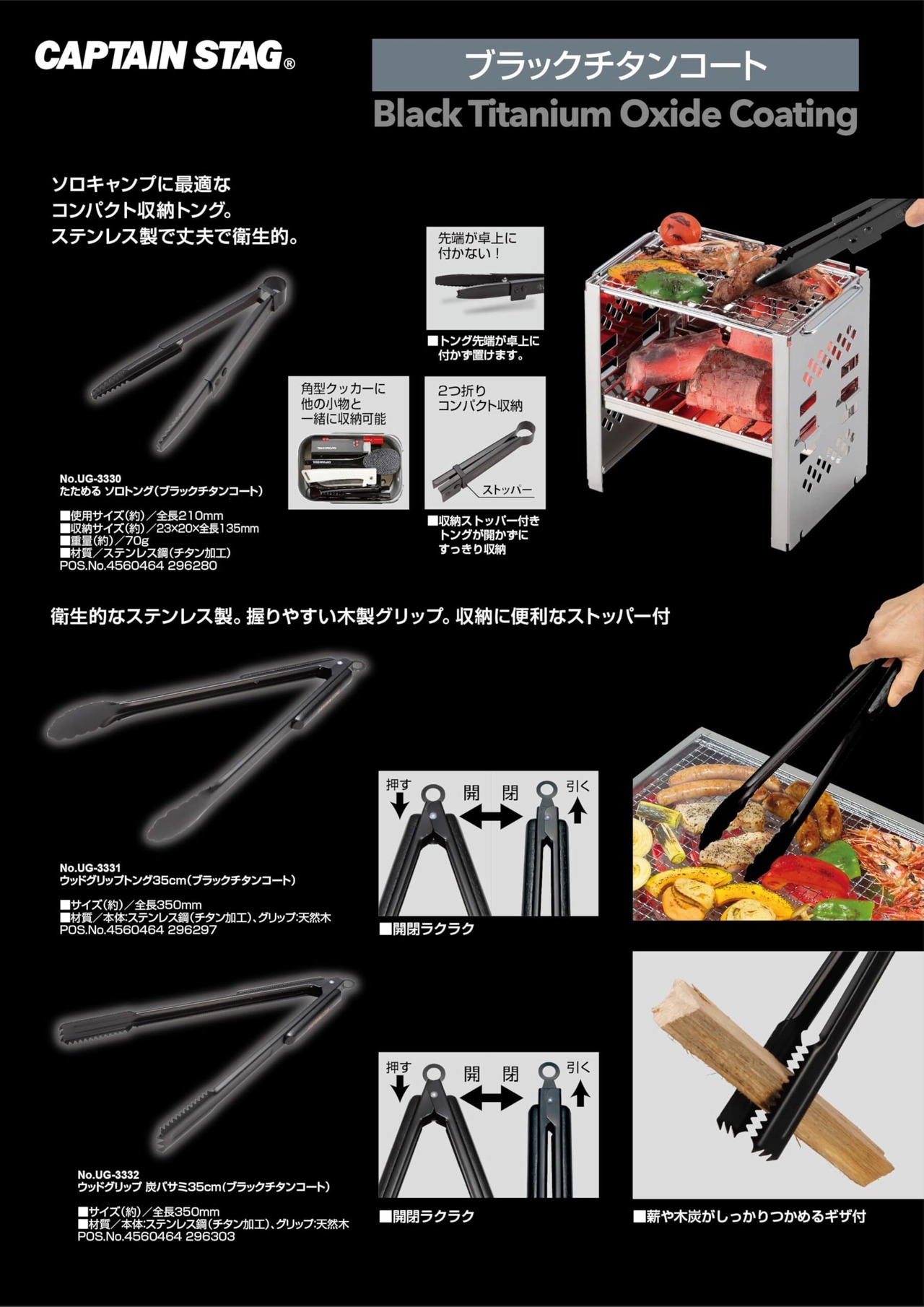 キャプテンスタッグ(CAPTAIN STAG) アウトドア BBQ トング 炭バサミ ウッドグリップ ステンレス製 ストッパー付き 【シルバー/ブラックチタンコート】