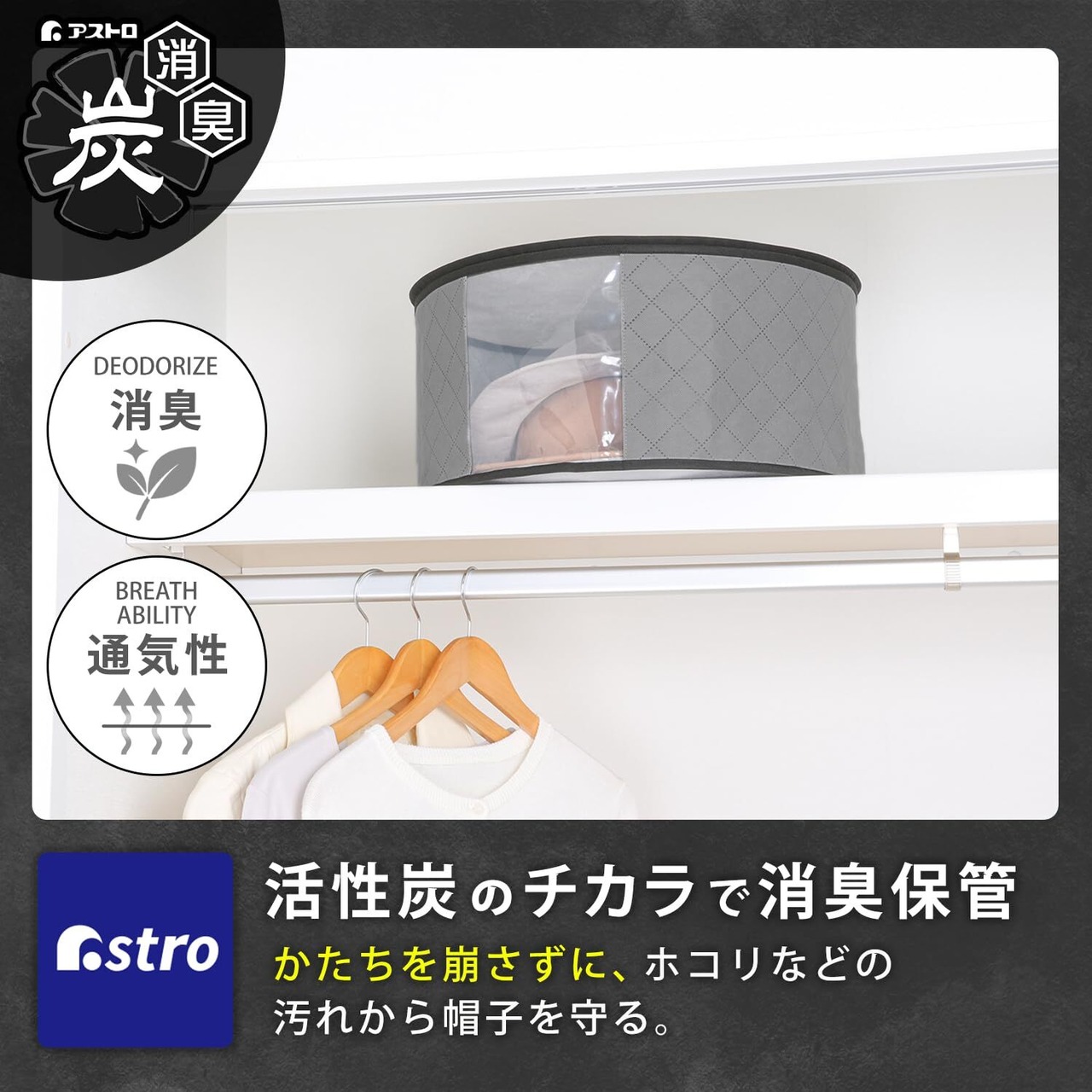 アストロ 活性炭消臭 帽子収納ケース 通気性の良い不織布 4~5個収納 埃除け 型崩れを防ぐ キャップ ハット 収納袋 収納ボックス 保管 折りたたみ 171-60