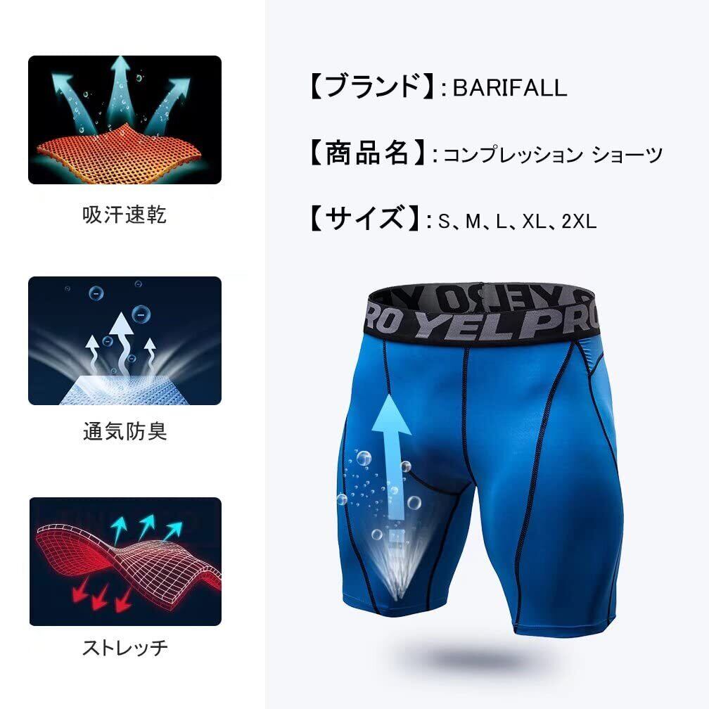 Barifall スポーツ ショート タイツ メンズ スパッツ レギンス コンプレッション ショート タイツ パワーストレッチ アンダーウェア 通気 吸汗 速乾 冷感