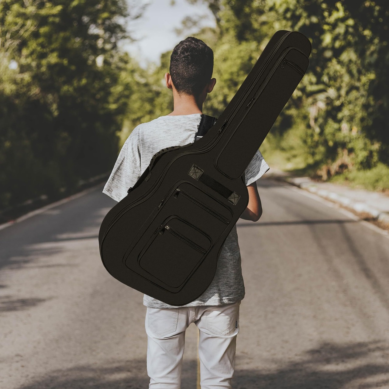 IBVIVIC ギターケース アコースティックギター ソフトケース 10mmスポンジ クラシックギター ケース 41インチ 軽量 ギグバッグ 肩掛け 手提げ 大容量 防水性 耐磨耗性 ブラック