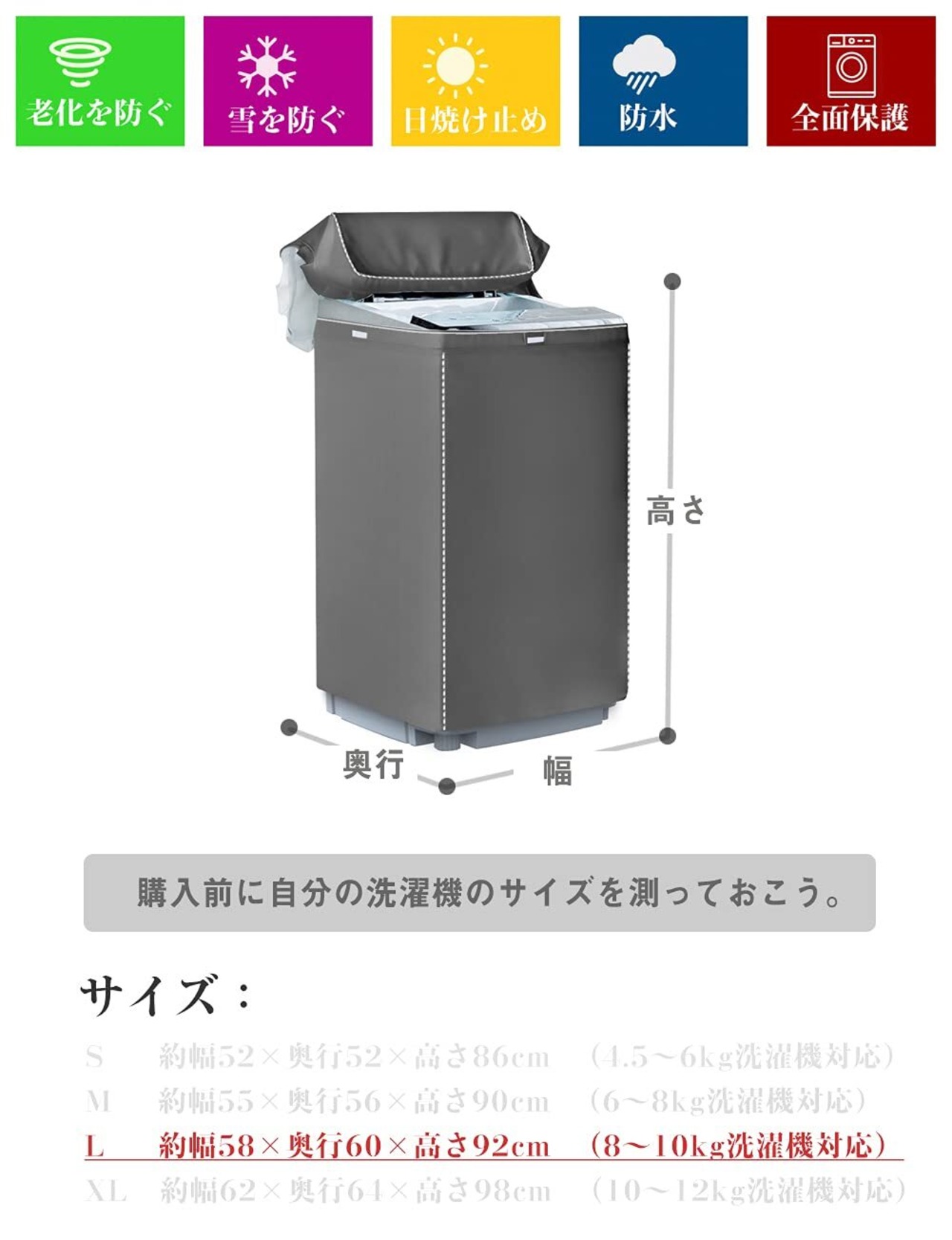 Mr.You洗濯機カバー 【デザイン改良】 4面包みデザイン グレー 防水 防日焼け 【L】58*60*92CM 8~10KG洗濯機対応
