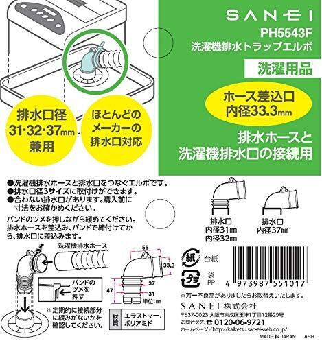SANEI(サンエイ) 洗濯機排水トラップエルボ 排水ホース接続用 31・32・37mm兼用 PH5543F