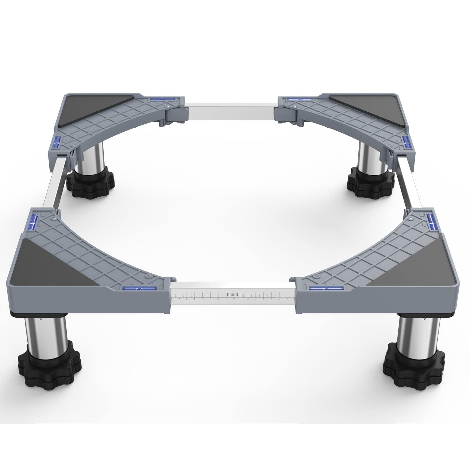 洗濯機 台 DEWEL 冷蔵庫置き台 13~17CM高度調節 増大増高ジャッキ付き 耐荷重約500kg かさ上げ 高さ調節 伸縮式 幅/奥行44.8~69cm 減音防振 昇降可能 4足 ステインレス製 防振パッド付き