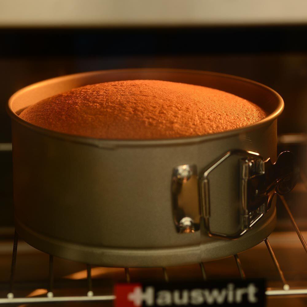 底が外れるタイプで且つ、側面がバネ式で緩めることができるので、焼きあがった後に型から取り外すのに便利です