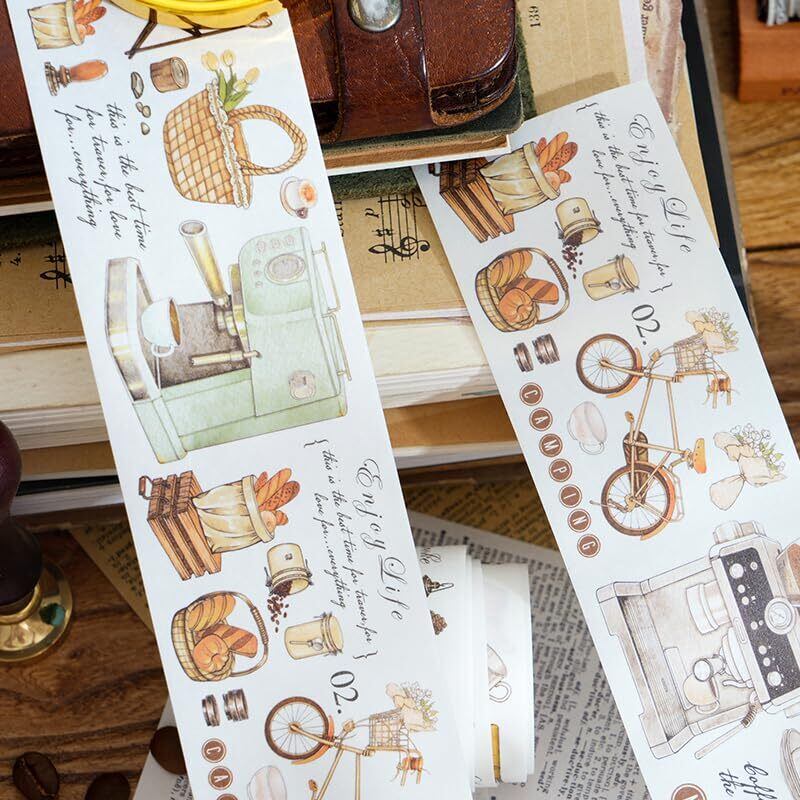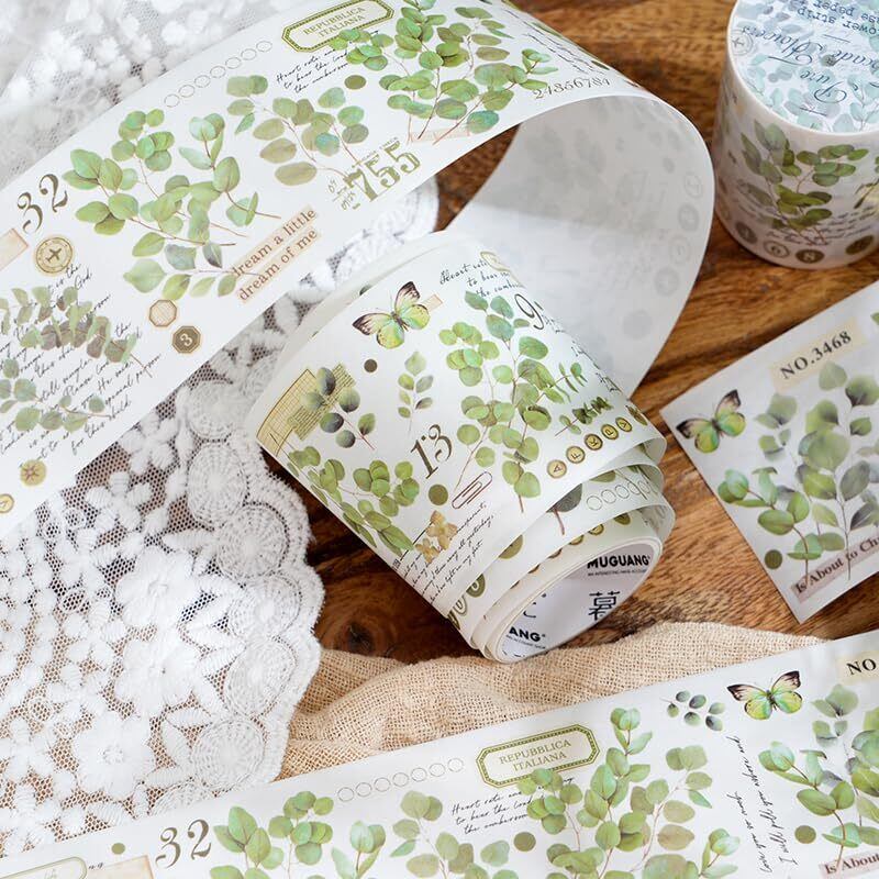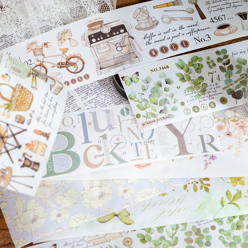 Alideco 6個 マスキングテープ かわいいロレトロ植物と花 テキスト 透明な耐水性 インク 和紙 粘着 テープ 広幅 DIY おしゃれ マステ シール (wujinglianxia)