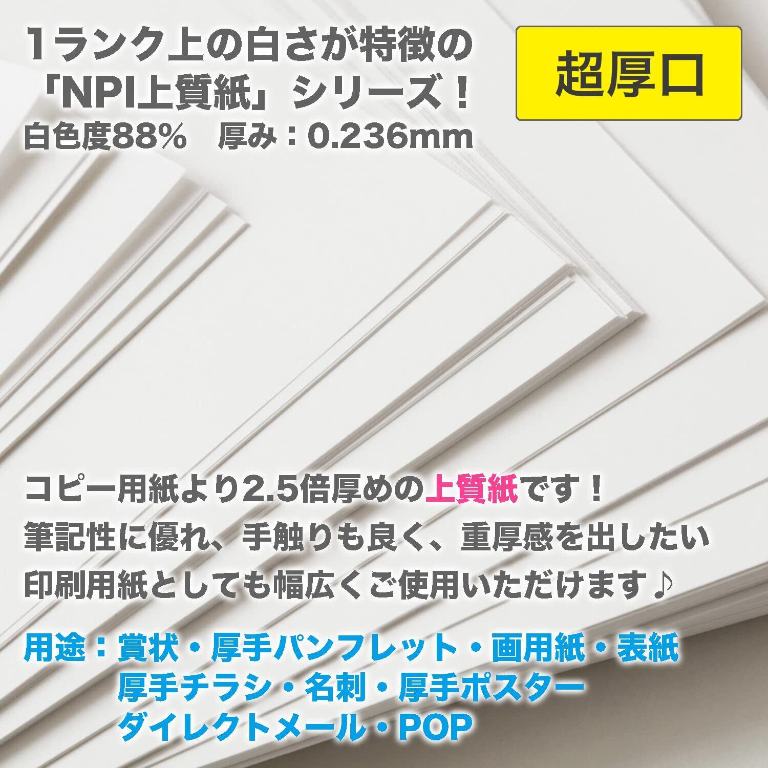 日本製紙 「超厚口」 NPI上質紙 A5 50枚 日本製 白色度88% 紙厚0.236mm 四六判表記180kg NPI-A5-50-J180