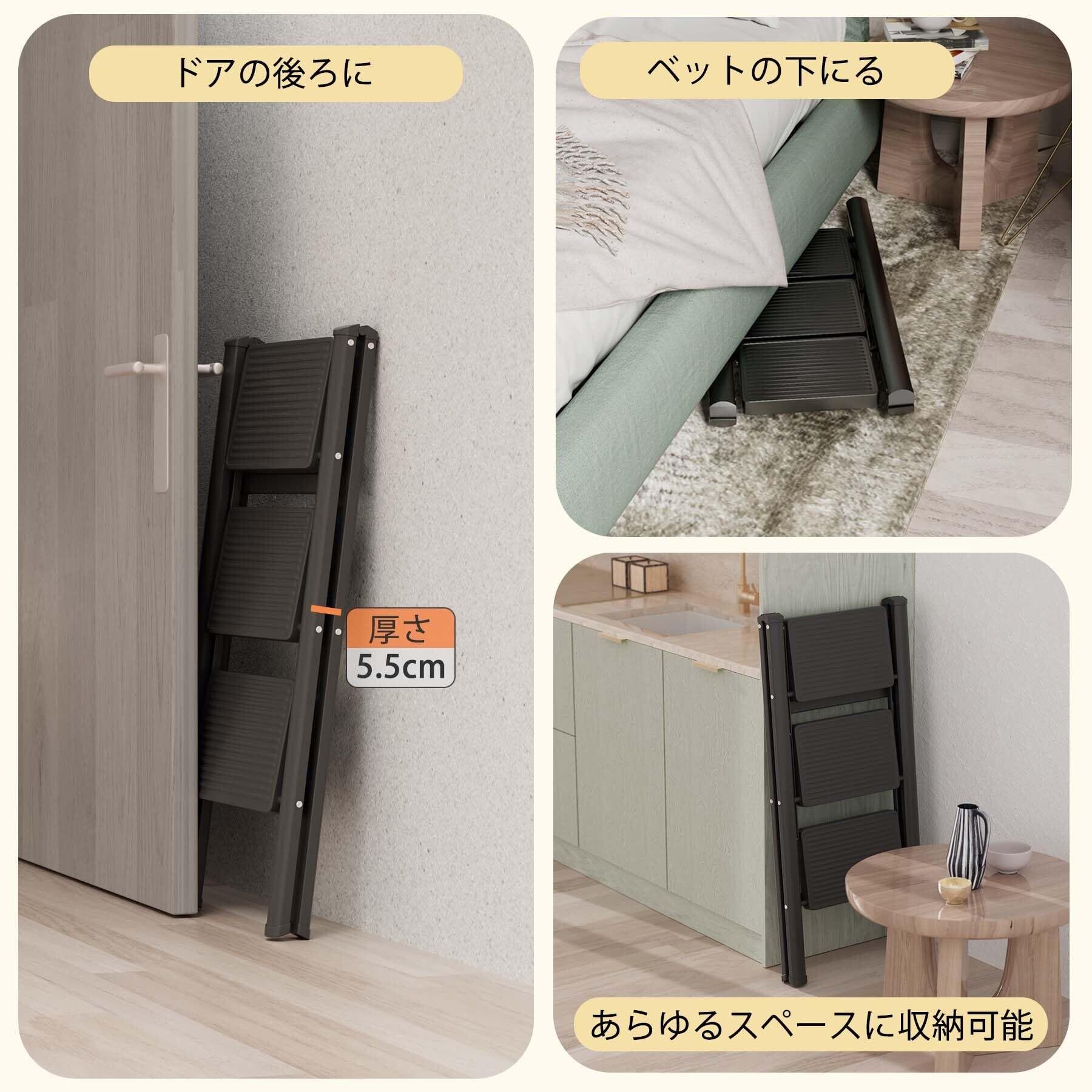 Ngardk 脚立 3段 軽量 室内 - 脚立 おしゃれ 折畳み ステップ 折りたたみ コンパクト 梯子 (3段 ブラック)