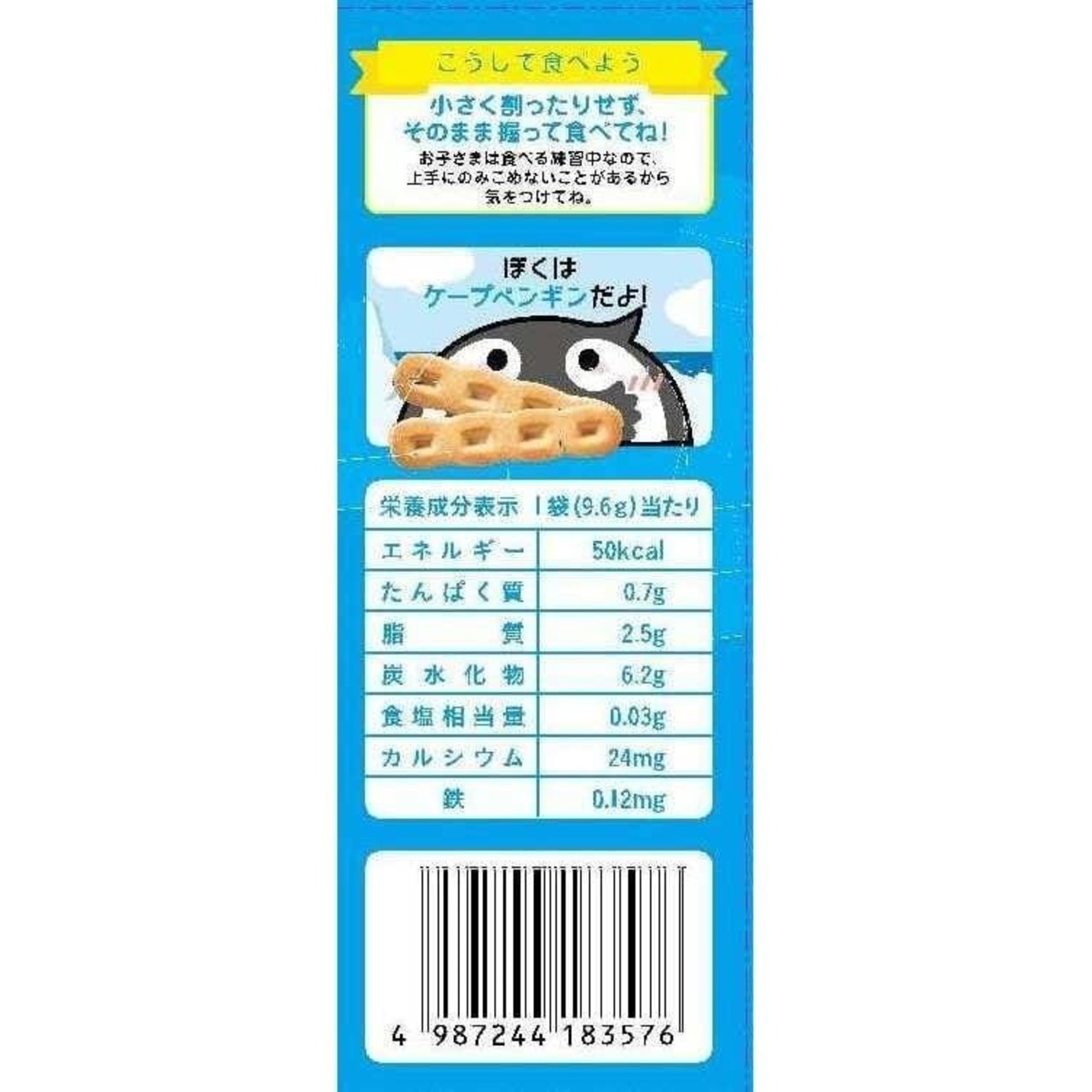 原材料:小麦粉、ショートニング、砂糖、麦芽糖、バナナピューレー、でん粉、乾燥鶏卵、加糖脱脂練乳、食塩/炭酸カルシウム、膨脹剤、ピロリン酸鉄