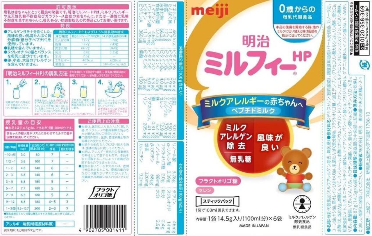 ミルク、卵、大豆のたんぱく質アレルギーなどの赤ちゃんに