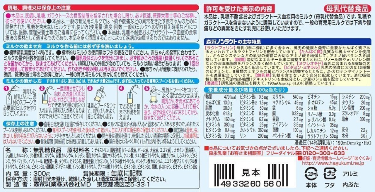 森永 ノンラクト 300g 無乳糖 粉ミルク