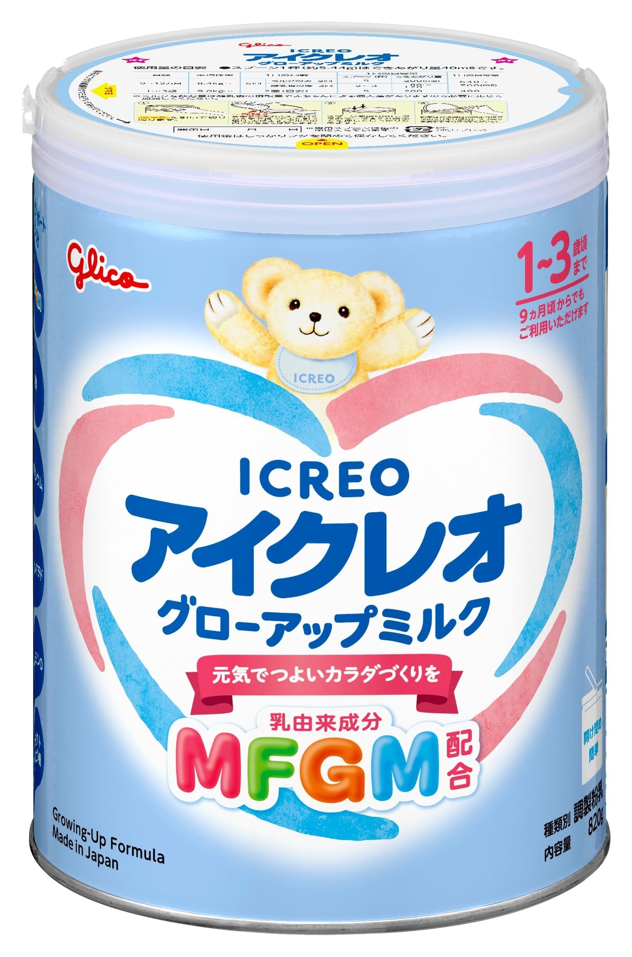 アイクレオ グローアップミルク 820g 江崎グリコ 幼児用粉ミルク フォローアップミルク MFGM 鉄 カルシウム ビタミンD 1歳頃~