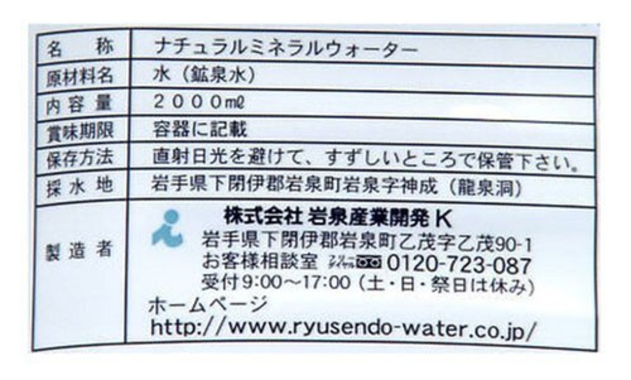 龍泉洞の水 2L×6本