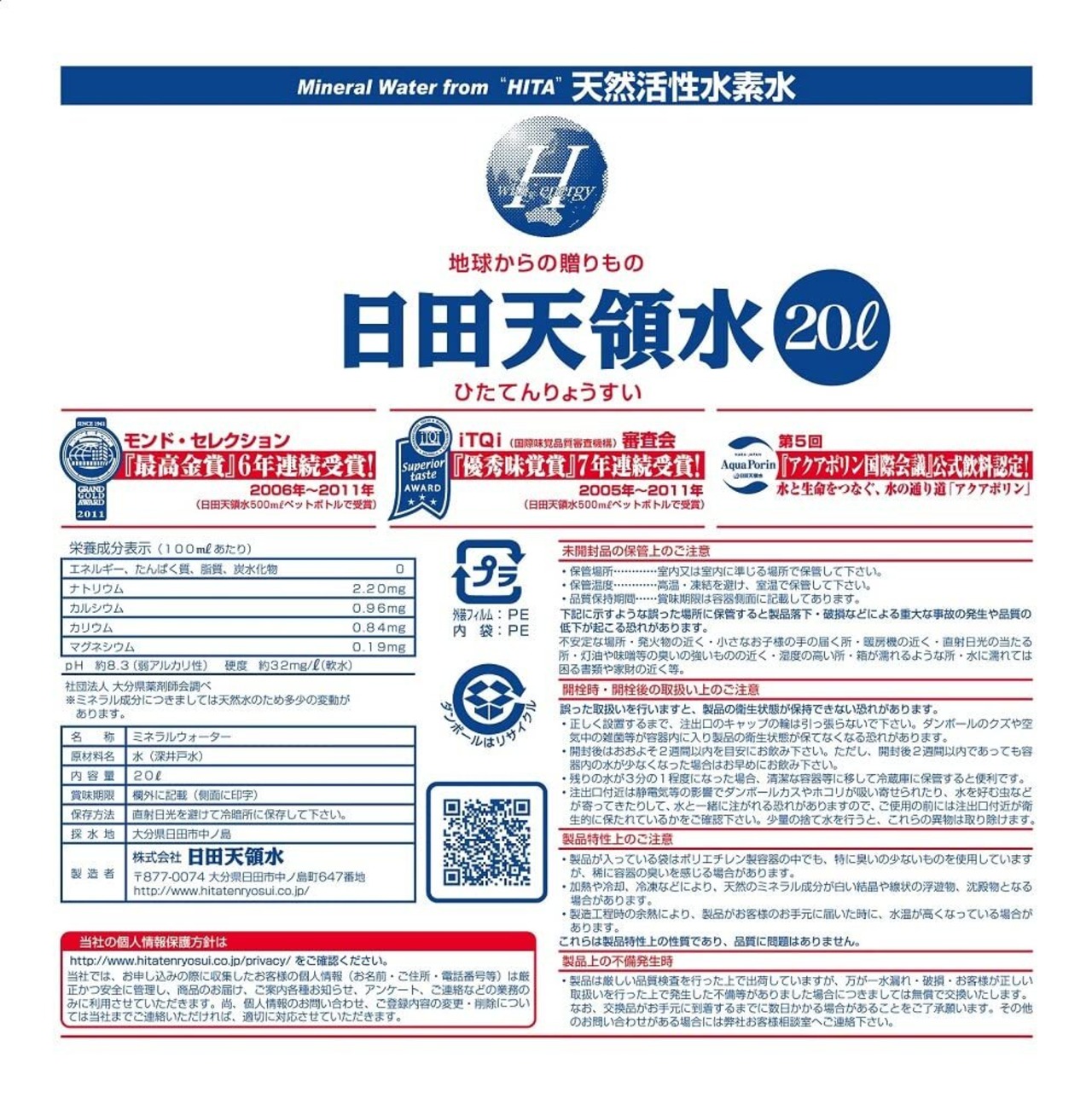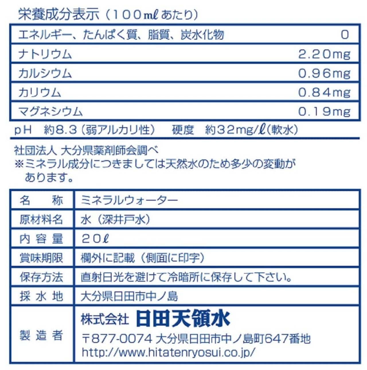 日田天領水 20L