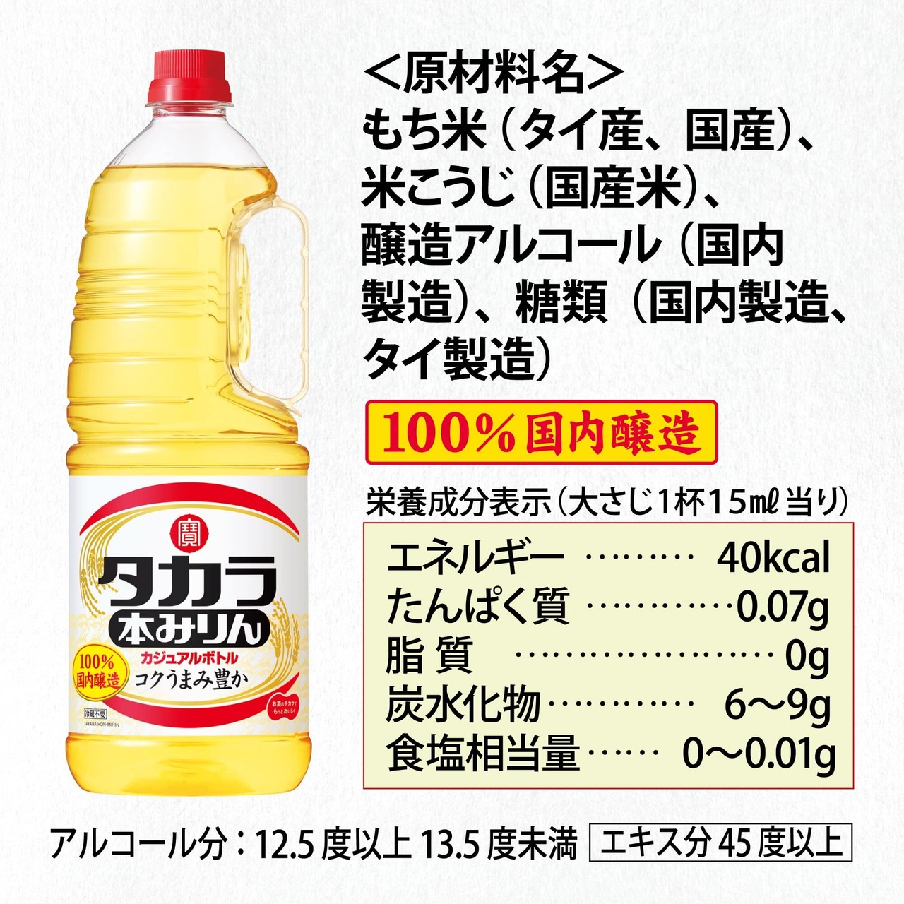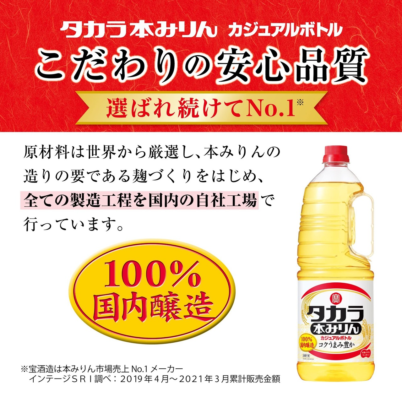 宝酒造 タカラ 本みりん カジュアルボトル 取手付 ペット 【豊かなコクとうまみ/国内醸造100%】 味醂 1800ml