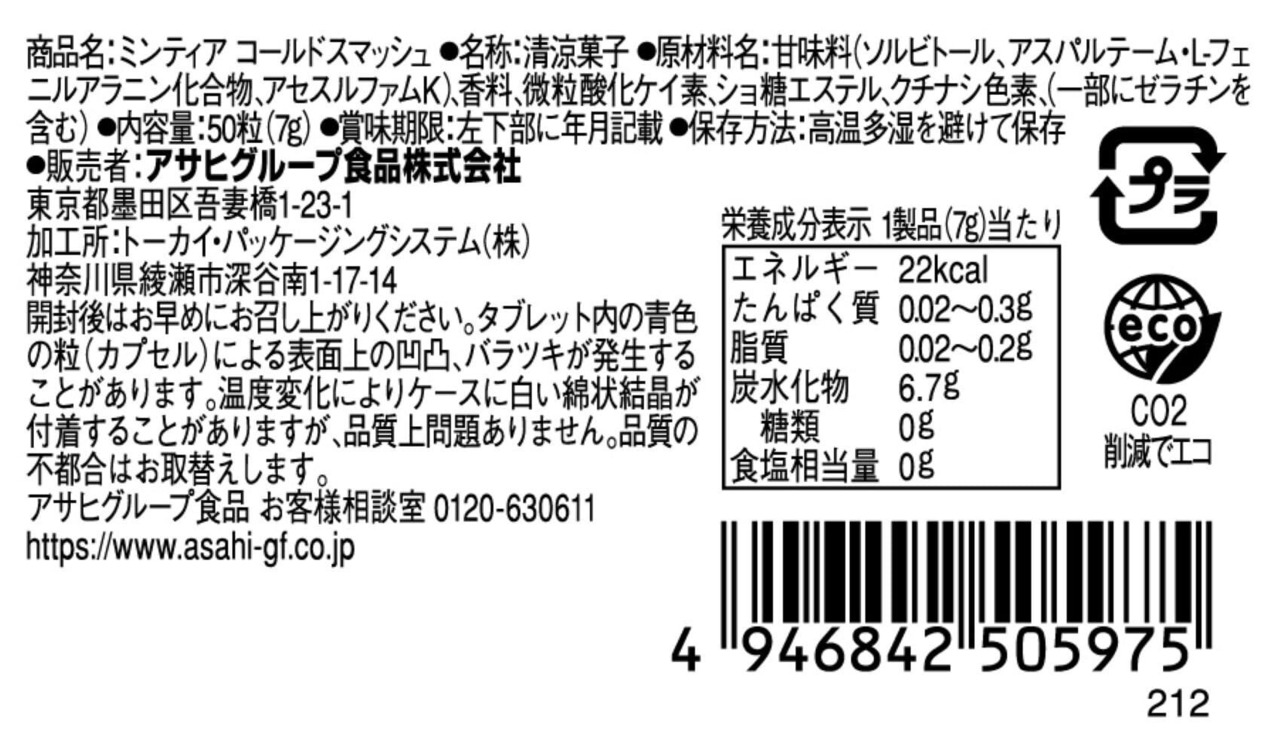 アサヒグループ食品 ミンティア コールドスマッシュ 50粒(7g)×10個