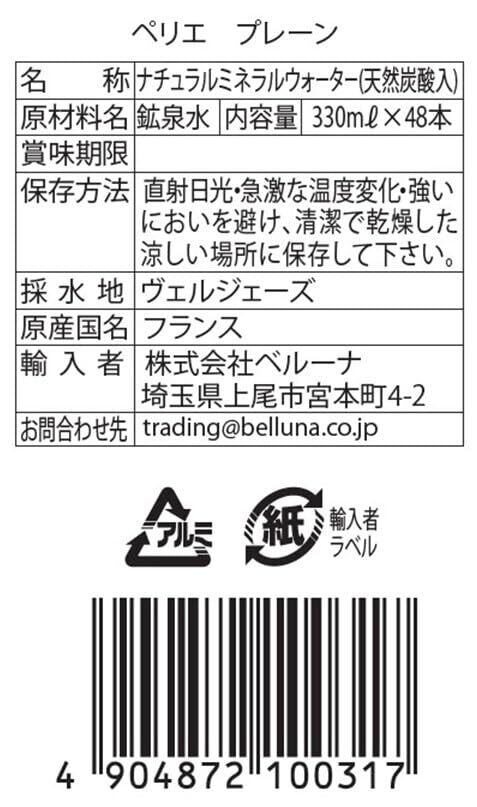 Perrier(ペリエ) プレーン 炭酸水 缶 330ml 「直輸入品 ×48本