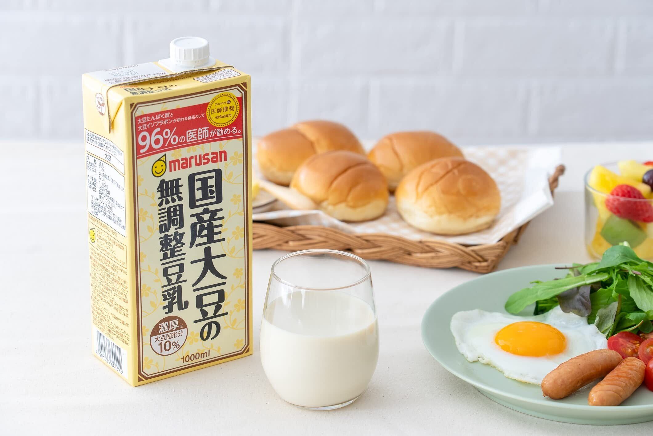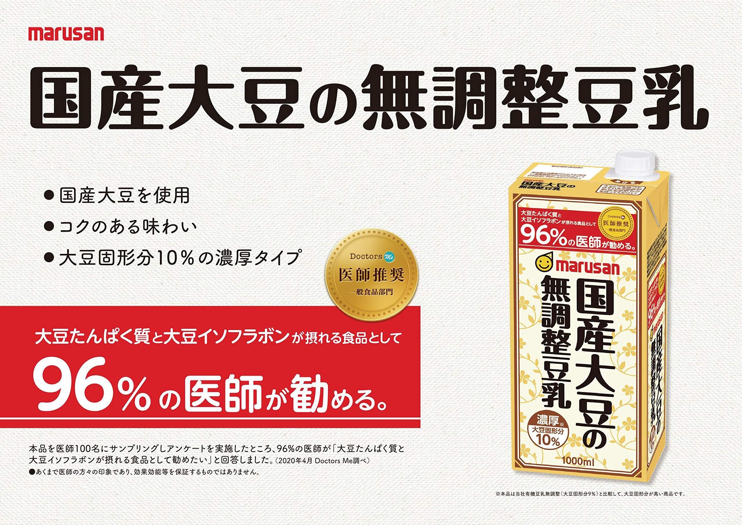 国産大豆100%使用した大豆固形分10%の無調整豆乳です。無調整豆乳飲用に期待する内容で、医師推奨マーク(DoctorsMe医師推奨)を取得しています。96%の医師が、『大豆たんぱく質と大豆イソフラボンが摂れる食品として勧めたい』と回答しました。※あくまで医師の方々の印象であり、効果効能等をするものではありません。