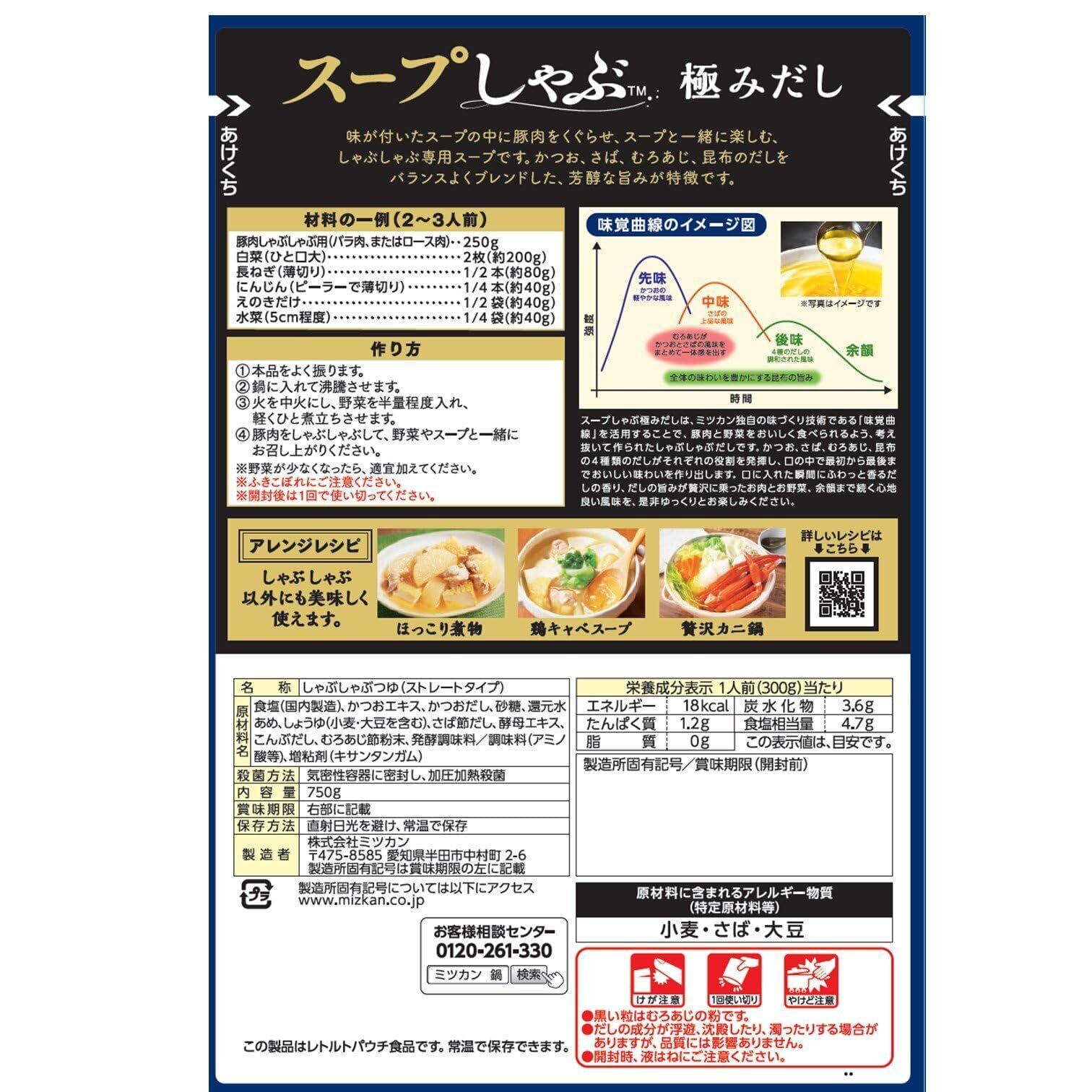 ミツカン スープしゃぶ 極みだし ストレート 鍋の素 しゃぶしゃぶ 750g×3個