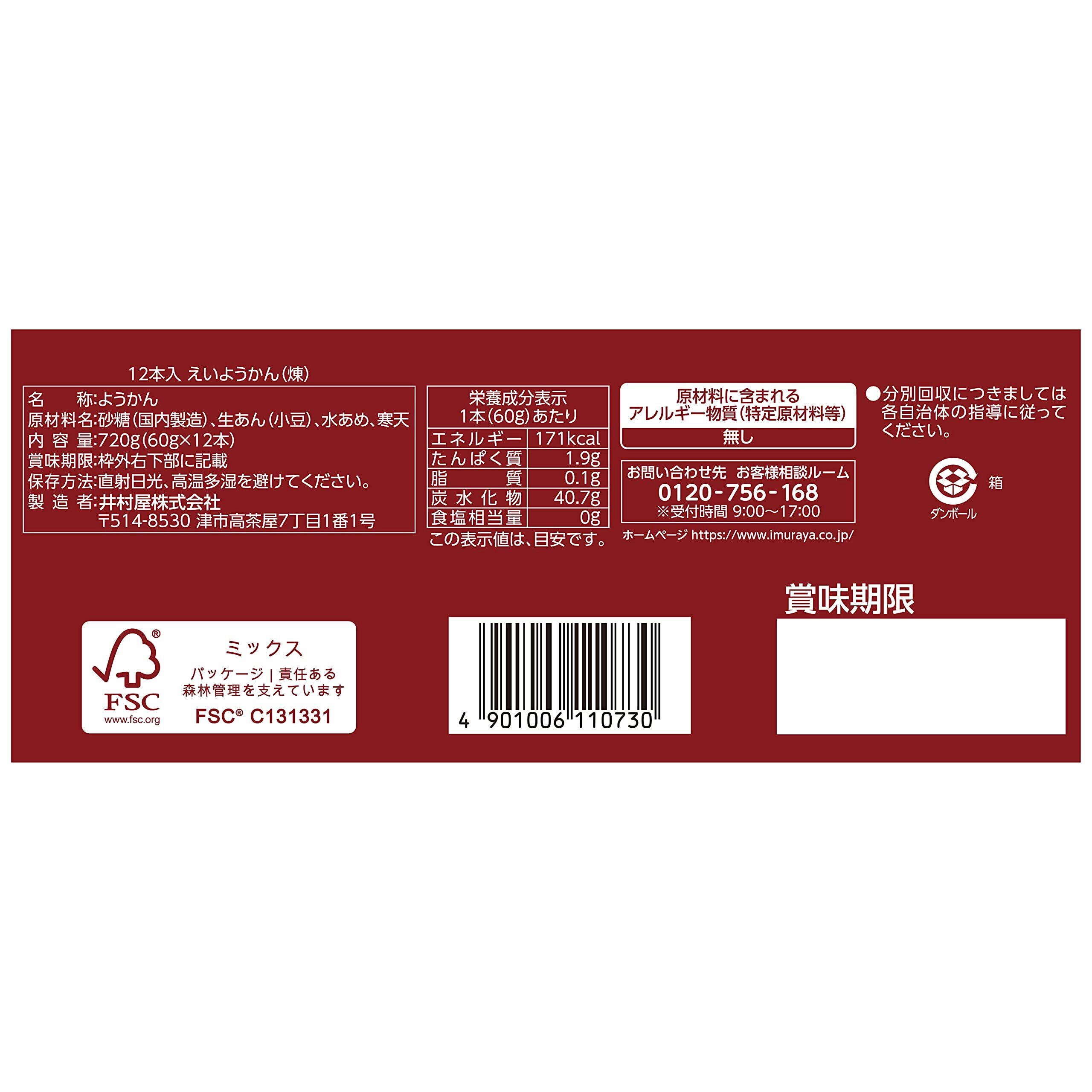 井村屋 えいようかん60g×12本入 受取らくらくポストインタイプ 【長期保存可能】 【非常食】 【備蓄用】 【カロリー補給】