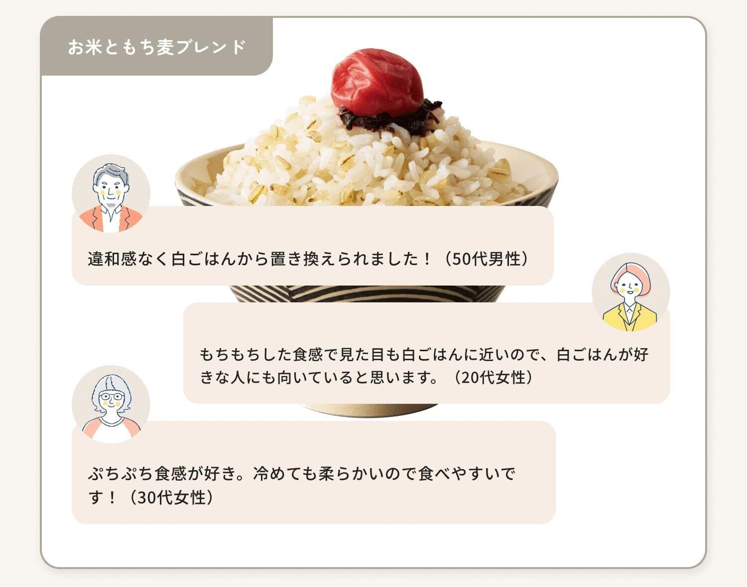 原材料・成分 うるち米(国内産)、加工玄米(玄米(国内産))、もち麦 ※お米や雑穀の産地・年産・品種によって、ご飯の食味や見た目が異なる場合がありますが、品質には問題ございません。