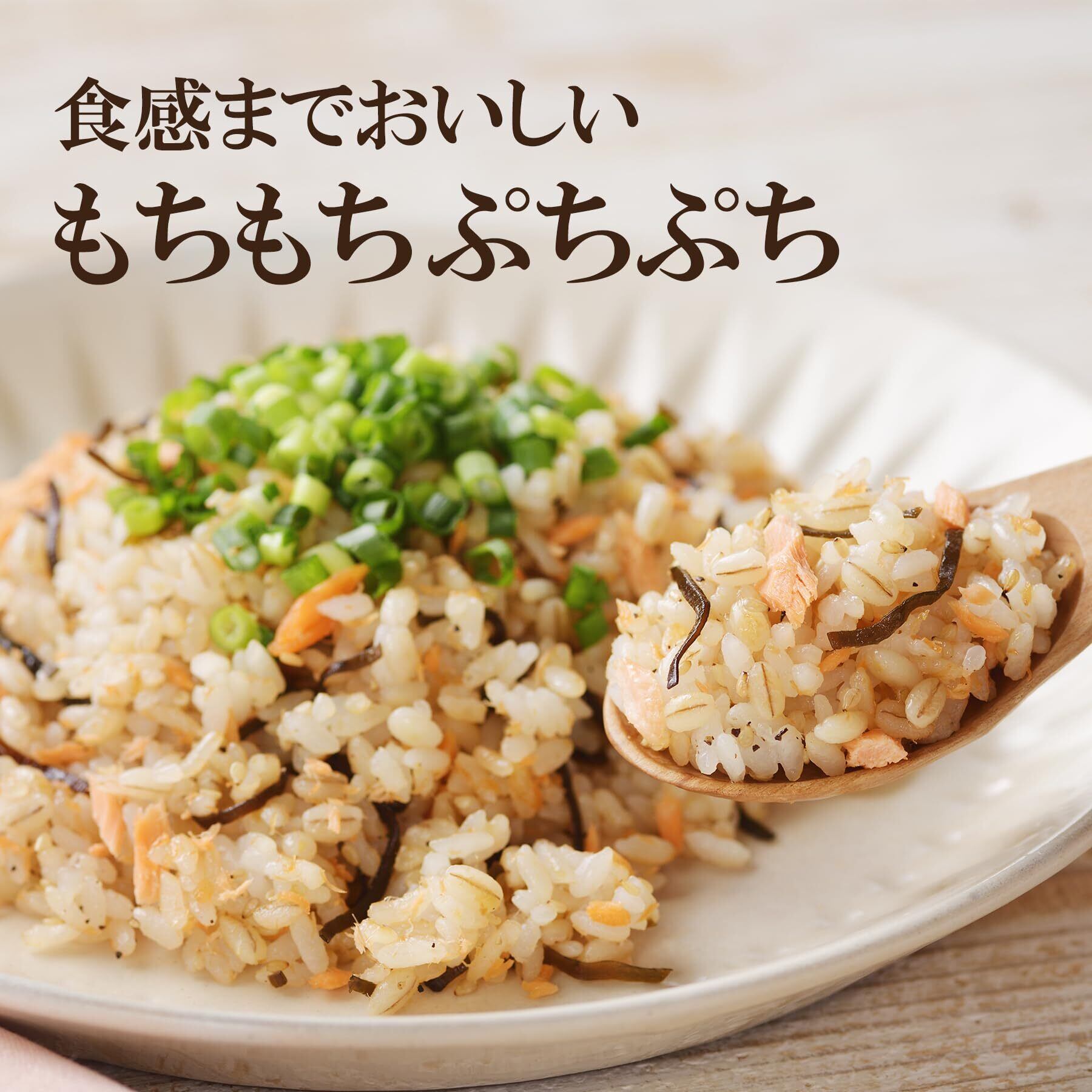 栽培、検査、加工まで国内で行ったもち麦です。もち麦特有のプチプチした食感が特徴で、食物繊維が100g中に13g含まれています。外国産のものよりも白く・クセがないため、初めての方でも美味しくお召し上がりいただけます。保存に便利なチャック付き。ごはんと一緒に炊飯して麦ごはんとして召し上がっていただく他、スープやサラダに加えていただくこともできます。