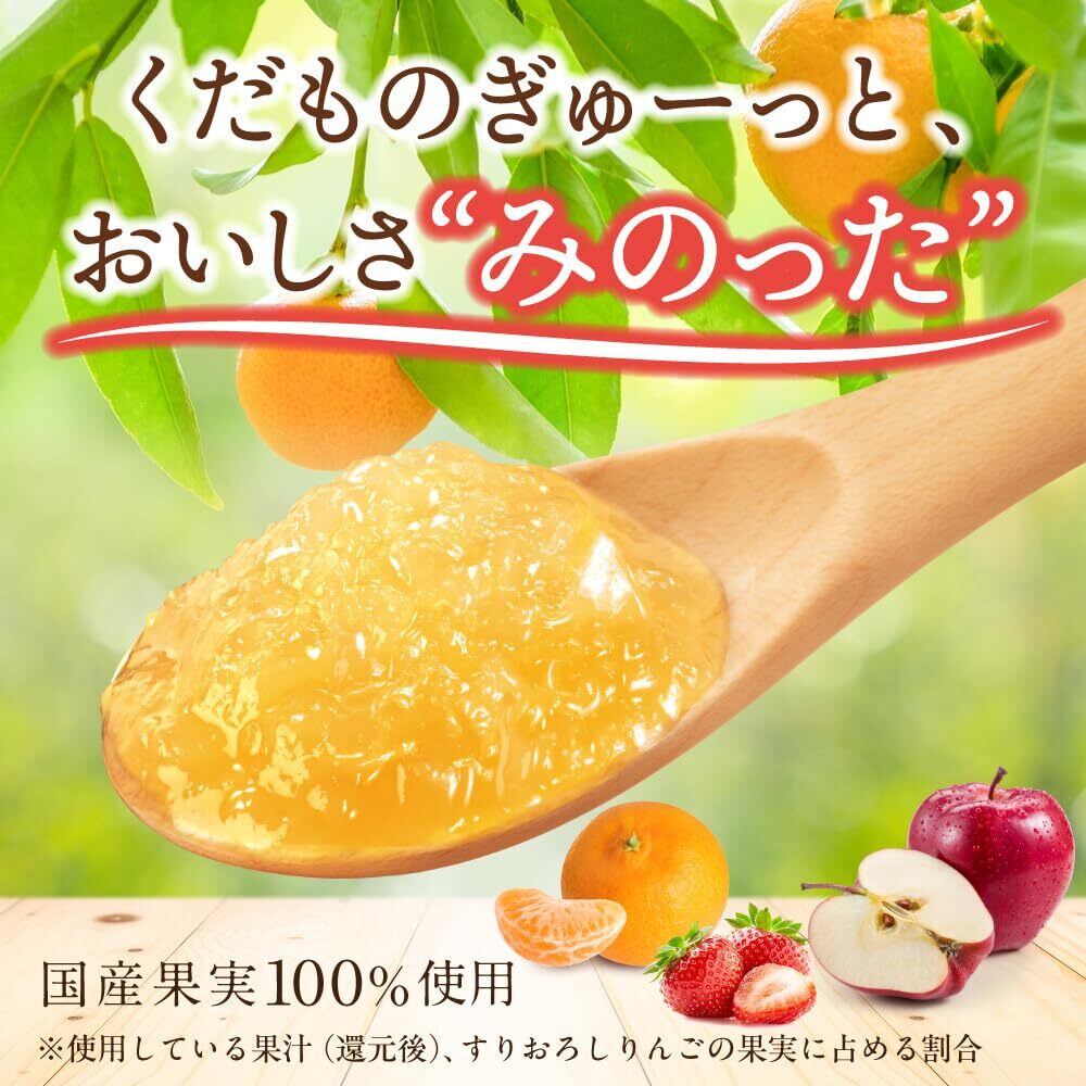 原材料名:すりおろしりんご(国内製造)、りんご濃縮果汁、いちご濃縮果汁(とちおとめ100%)、寒天/pH調整剤、ゲル化剤(増粘多糖類)、乳化剤