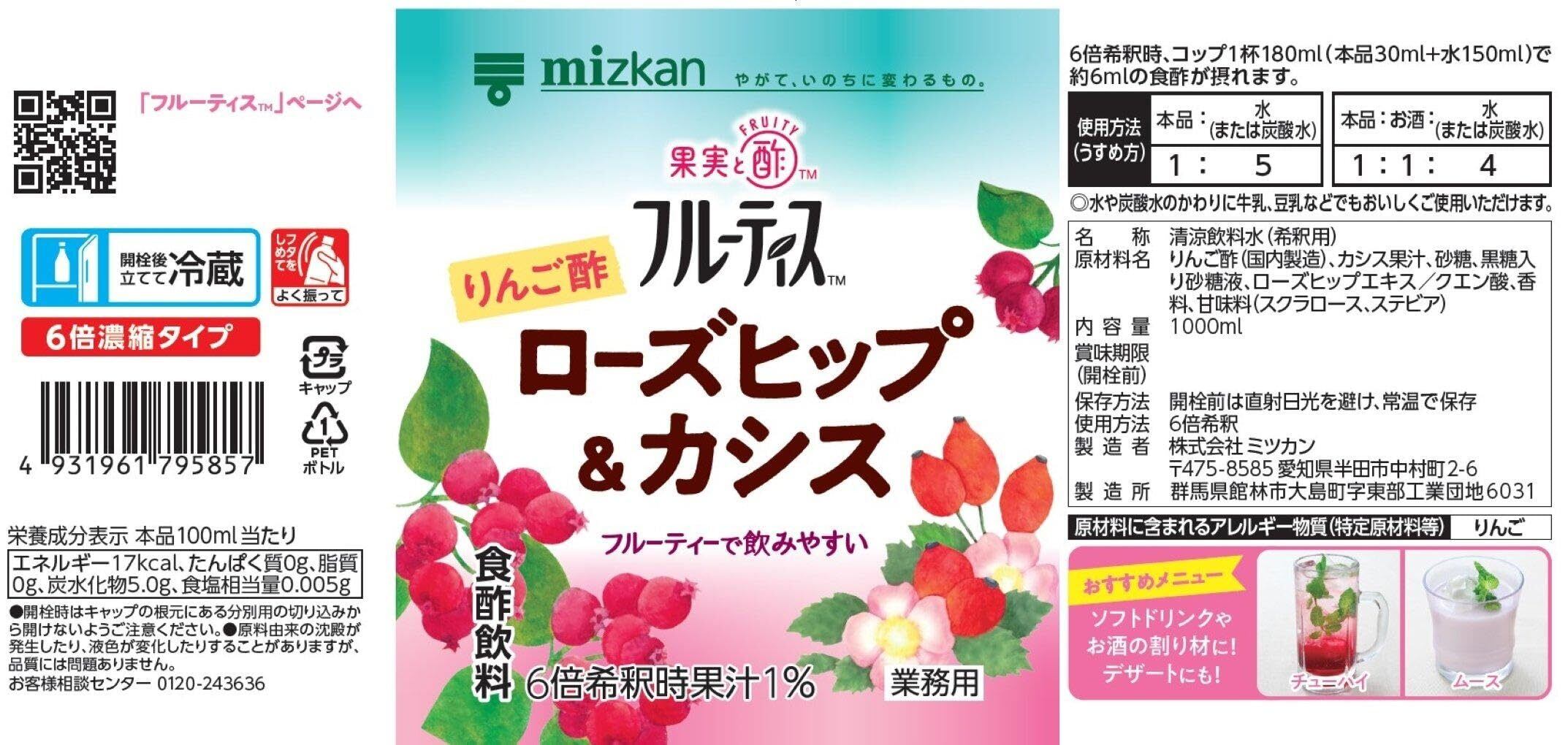 ミツカン 業務用 フルーティス りんご酢ローズヒップ&カシス 1000ml(6倍濃縮タイプ)飲むお酢