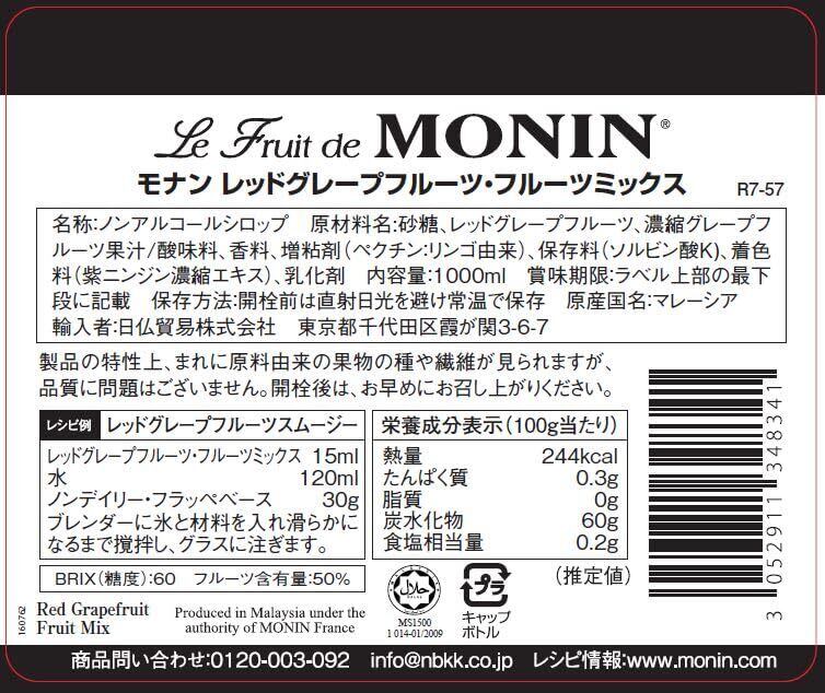 MONIN(モナン) レッドグレープフルーツ・フルーツミックス 1L 【ピューレー フルーツソース カクテル モクテル ノンアルコール割り材】【常温保存】