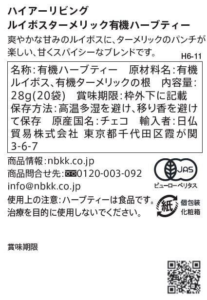 Higher Living Organic(ハイアーリビング) ルイボスターメリック 有機 ハーブティー 20TB(オーガニック 個包装)