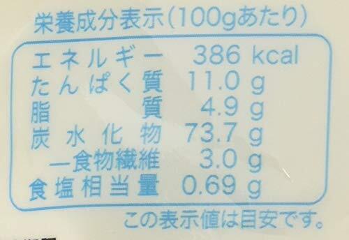 1食(100g)当り:エネルギー380kcal、水分8.2g、たんぱく質11.1g、脂質4.9g、炭水化物72.0g、灰分2.9g、ナトリウム276mg、食塩相当量2.9g
