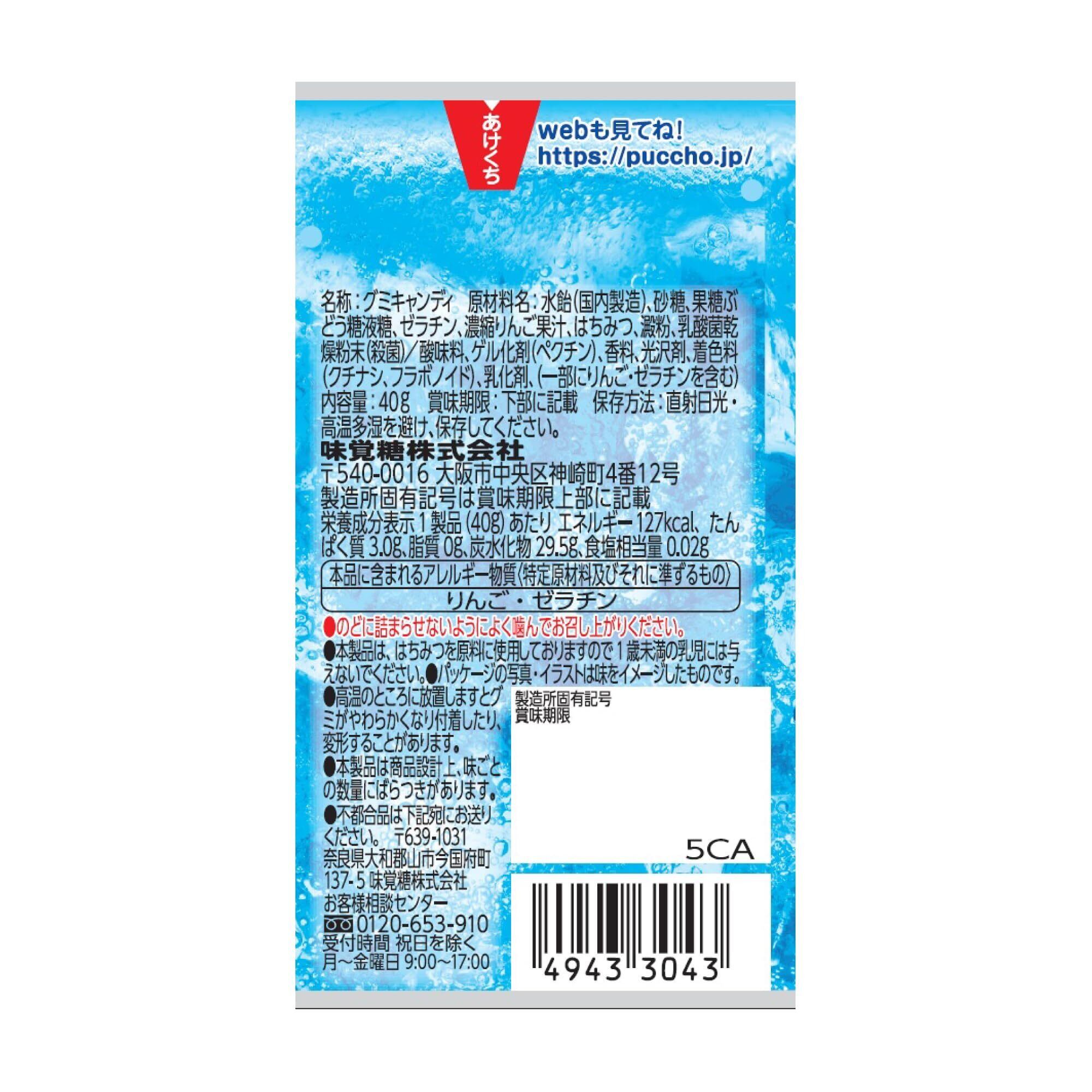 水飴(国内製造)、砂糖、果糖ぶどう糖液糖、ゼラチン、濃縮りんご果汁、はちみつ、澱粉、乳酸菌乾燥粉末(殺菌)/酸味料、ゲル化剤(ペクチン)、香料、光沢剤、着色料(クチナシ、フラボノイド)、乳化剤、(一部にりんご・ゼラチンを含む)
