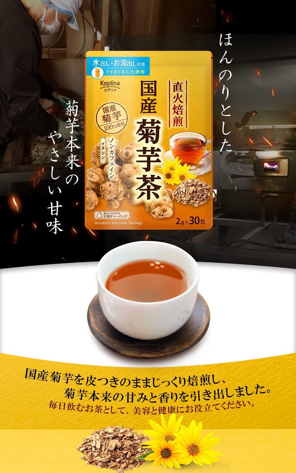 国産焙煎菊芋茶 2g x 30包 1個【テトラ型ティーバッグ/国産/大容量30包/水出し/お湯だし共用/イヌリン/食物繊維/健康食品/安心国内製造/コプリナ】