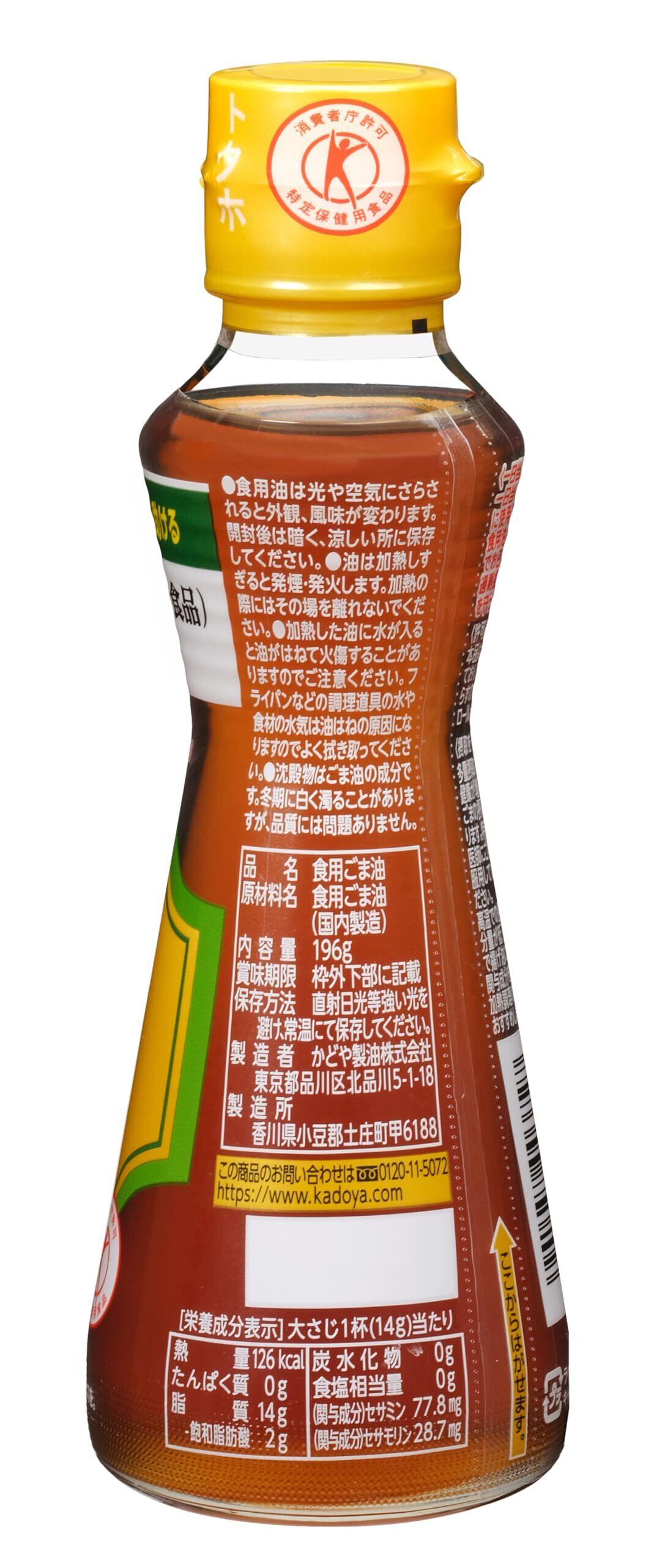 「トクホ かどや製油 健やかごま油」は、健康を考えた高品質なごま油です!100%焙煎ごまから抽出されたこのごま油は、豊かな香りと深い味わいが特徴で、料理を一段と引き立てます。