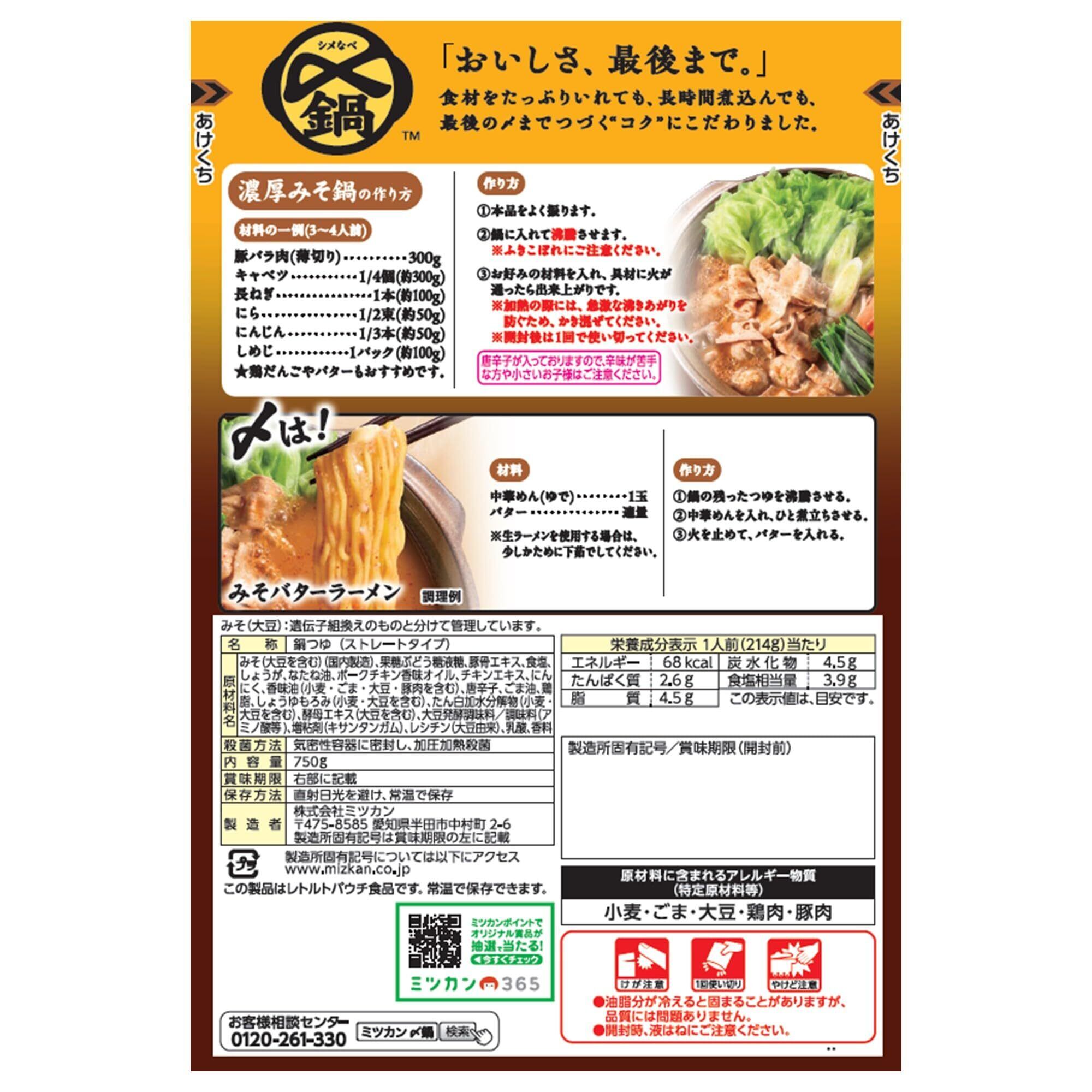 ミツカン 〆まで美味しい濃厚みそ鍋つゆ ストレート 750g×4袋