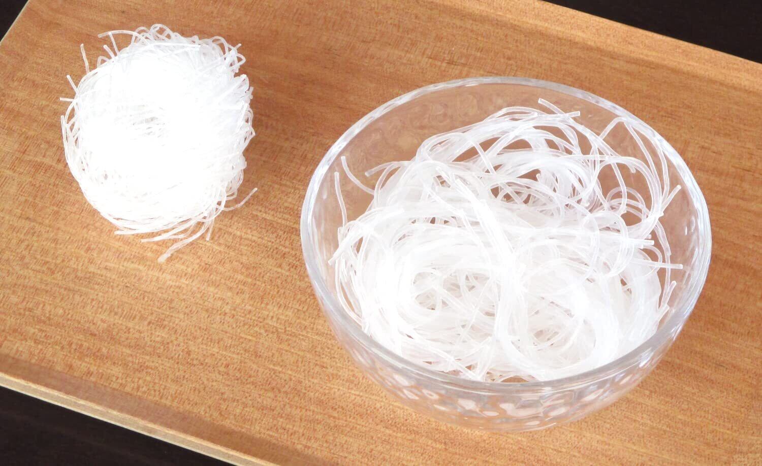 緑豆春雨は緑豆という豆からとったデンプンを加工して作った春雨のことを言います。