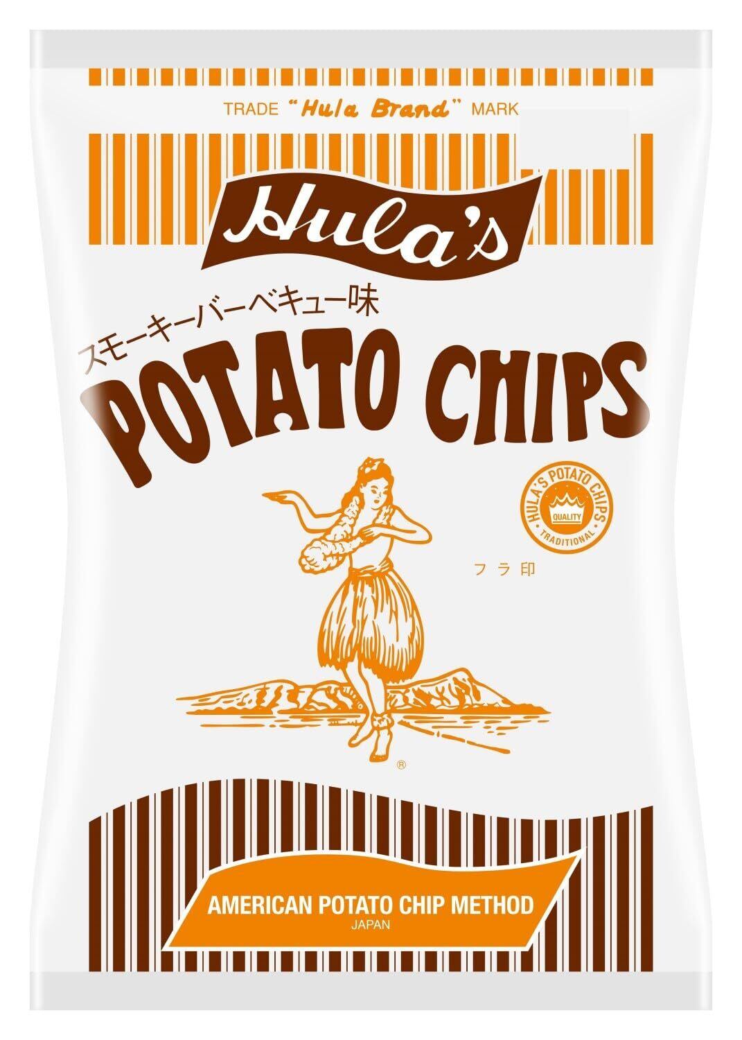 ハワイで生まれ日本で育ったフラポテトチップ! ハワイでも大人気のバーベキュー味。炭火でスモークされたおいしそうな香りとじっくりローストされた肉のうまみがポテトチップスにからんでいます。