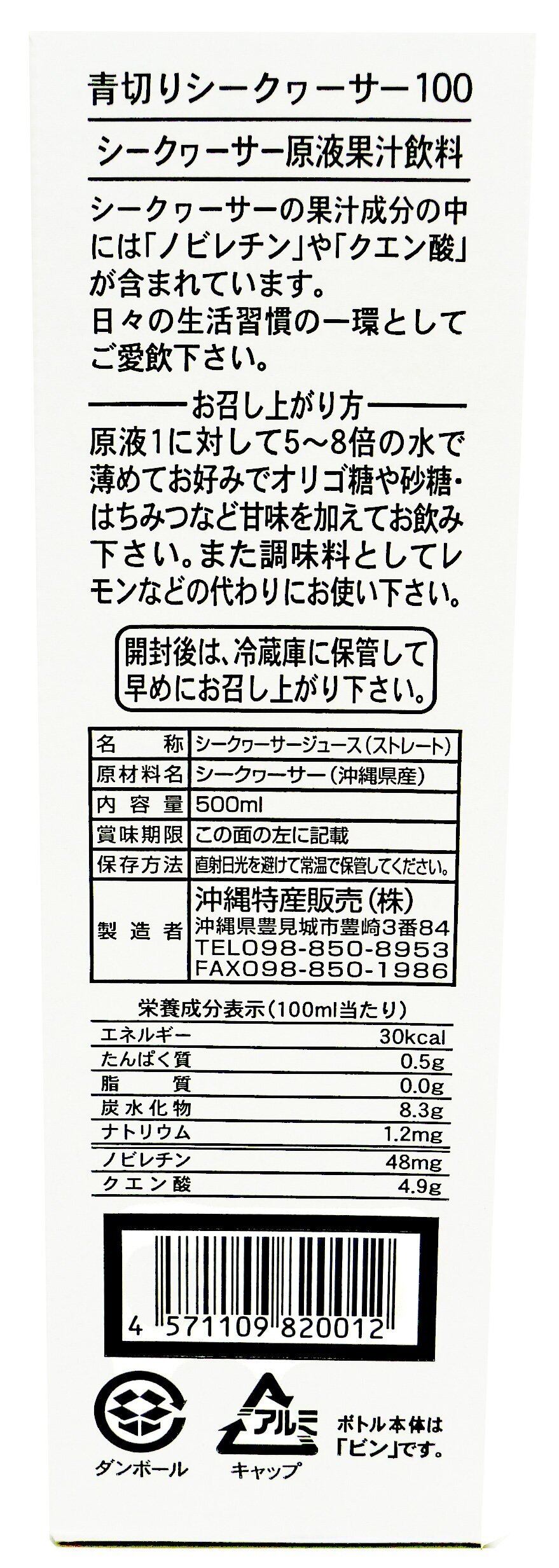 「長寿宣言の村」沖縄県大宜味村産のシークヮーサー果汁100%使用。5~8倍に薄めて砂糖・ハチミツ等を加えたジュースはとてもさわやかで美味しい。また、お漬物・お刺身・和え物に最適な風味。また、揚げ物やお肉・お魚などにもレモンの代用としても使える。