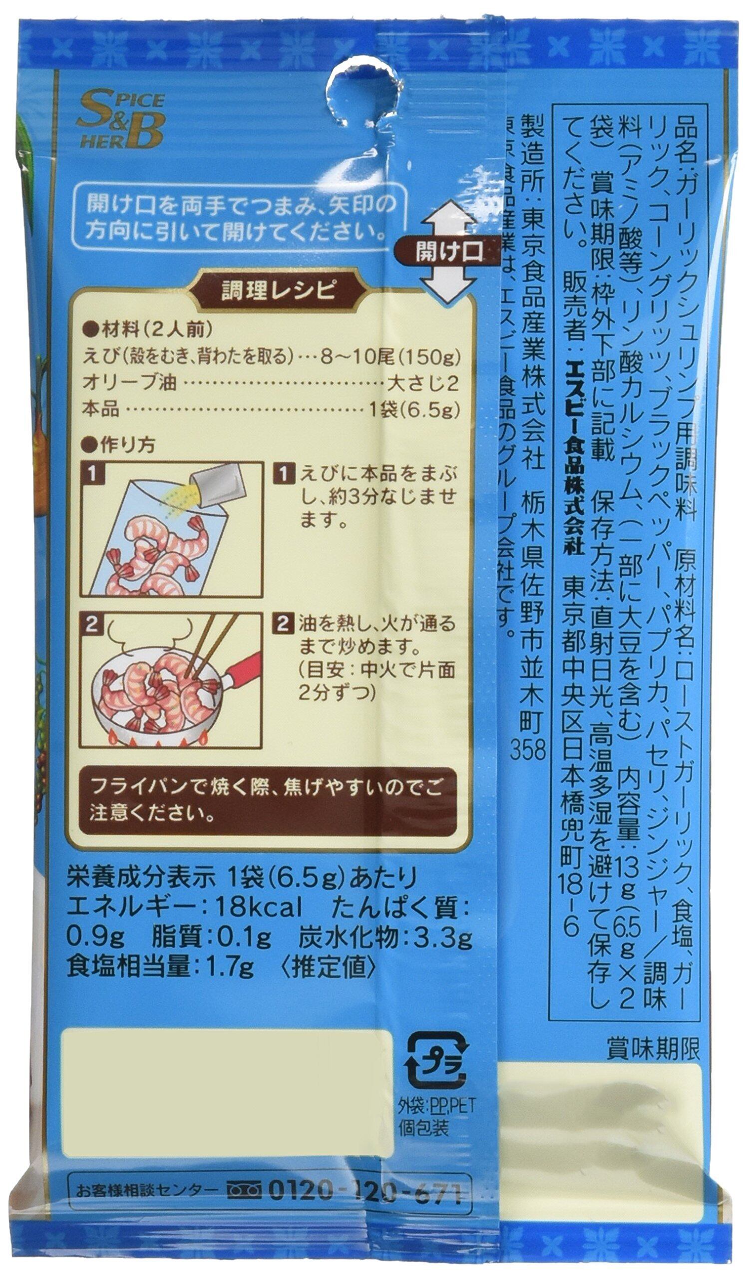 SPICE&HERBシーズニング S&B シーズニング ガーリックシュリンプ 13g×5個