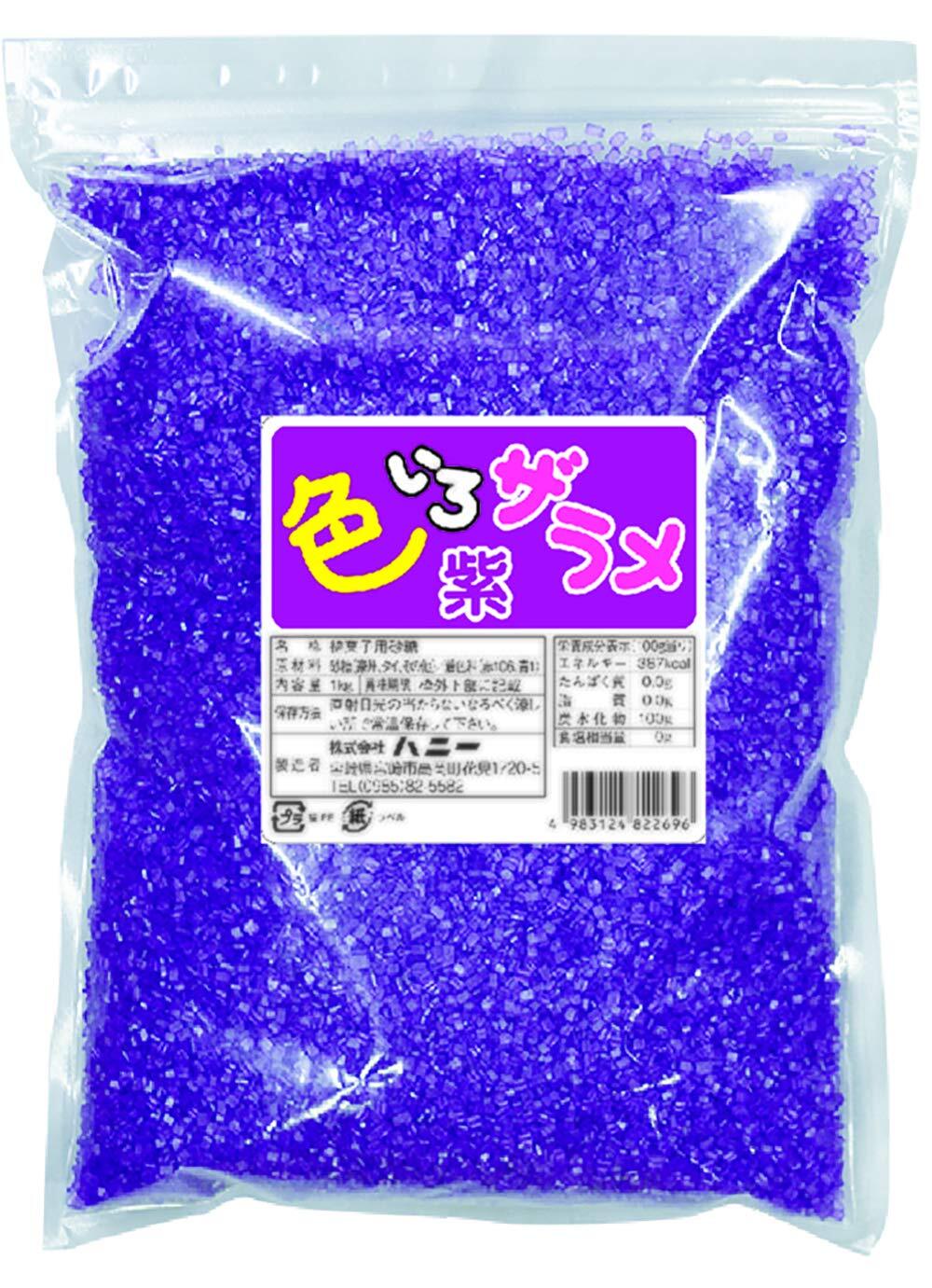 「ハニー 業務用 色いろザラメ紫」は、色とりどりのザラメ糖を使用した美しいお砂糖です!お菓子作り・飲料・料理に彩りを添えること間違いなしのアイテムです。業務用サイズの1Kgパックで、たっぷりお使いいただけます。