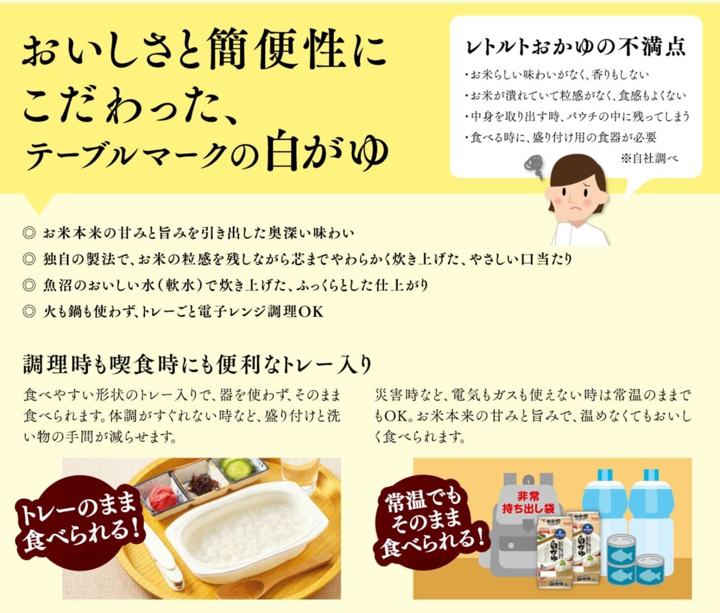 普段の食事はもちろん、体調がすぐれないとき、非常時にも助かる1品です。
