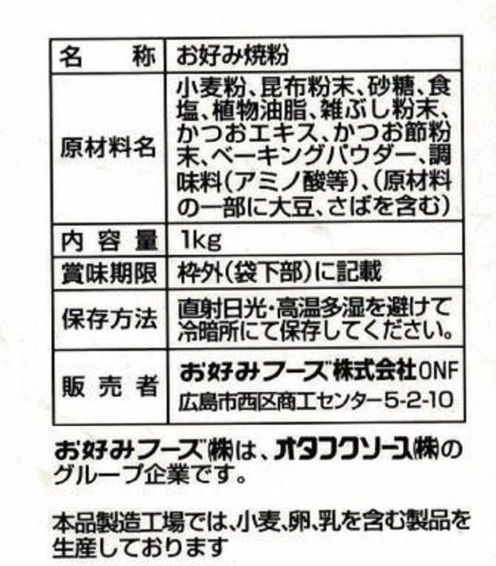 キャベツの甘味が引き立つよう「昆布だし風味」を全面に出しています。キャベツ等の野菜から水が出ても、焼きあがりに影響がないようグルテンの質が強いものを採用しています。「赤穂」という塩の名産地で製造されたこだわりの塩を100%使用しています。
